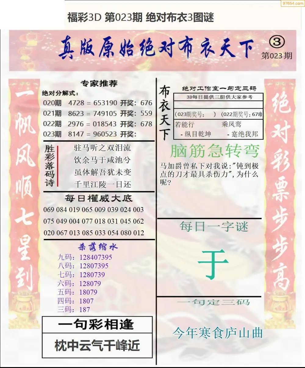 26023期丹东一句定三码(正版)_今晚3D图谜