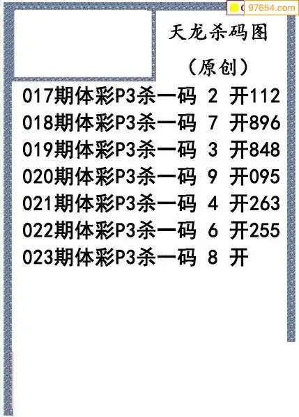 26年023期天龙体彩P3杀码图谜