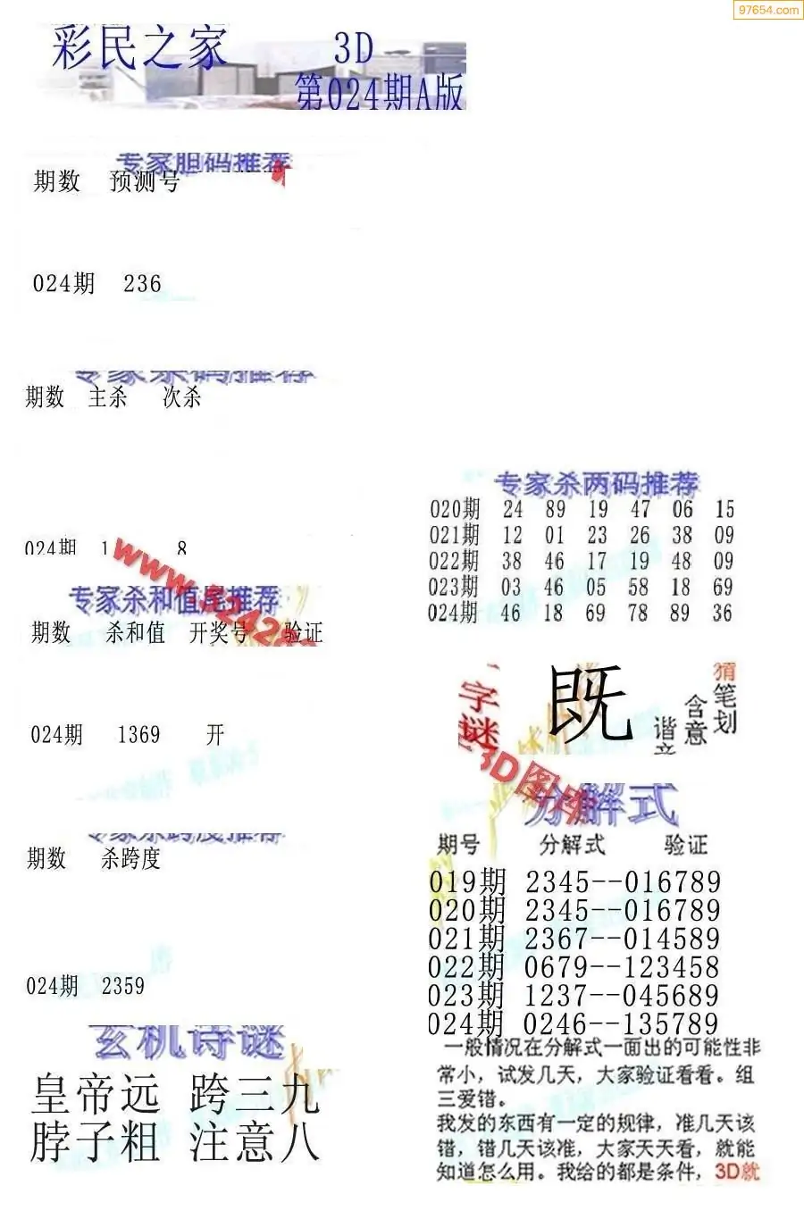 26024期3D彩民各类资料A版