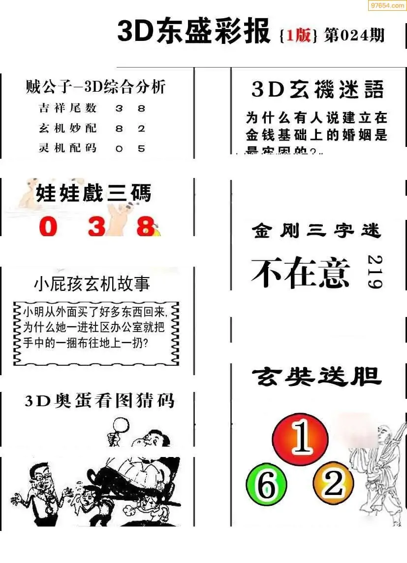 024期3D牛彩预测报+彩吧字谜报