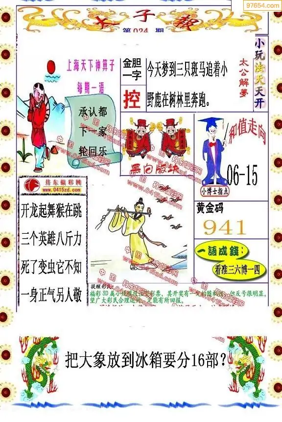 024期福彩太子报红五图库