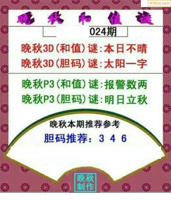 26024期晚秋和值谜胆码推荐