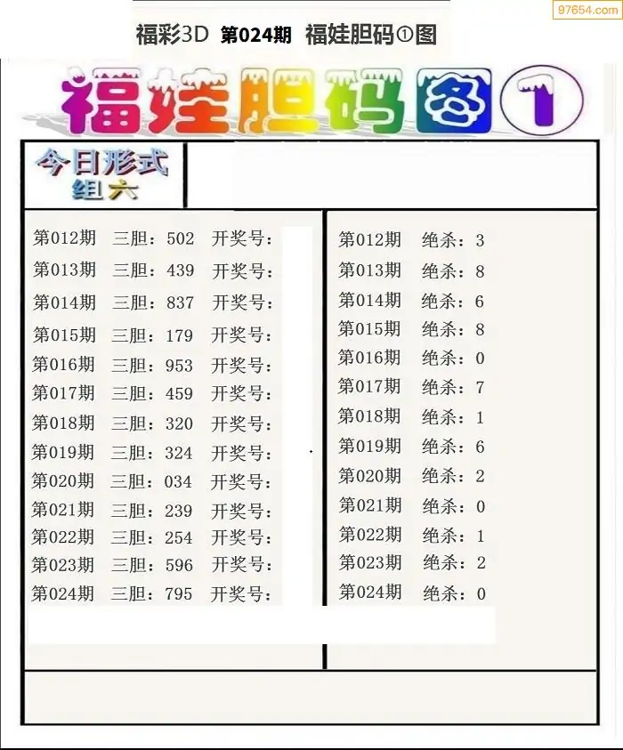 26024期3D精品胆杀码图迷汇总