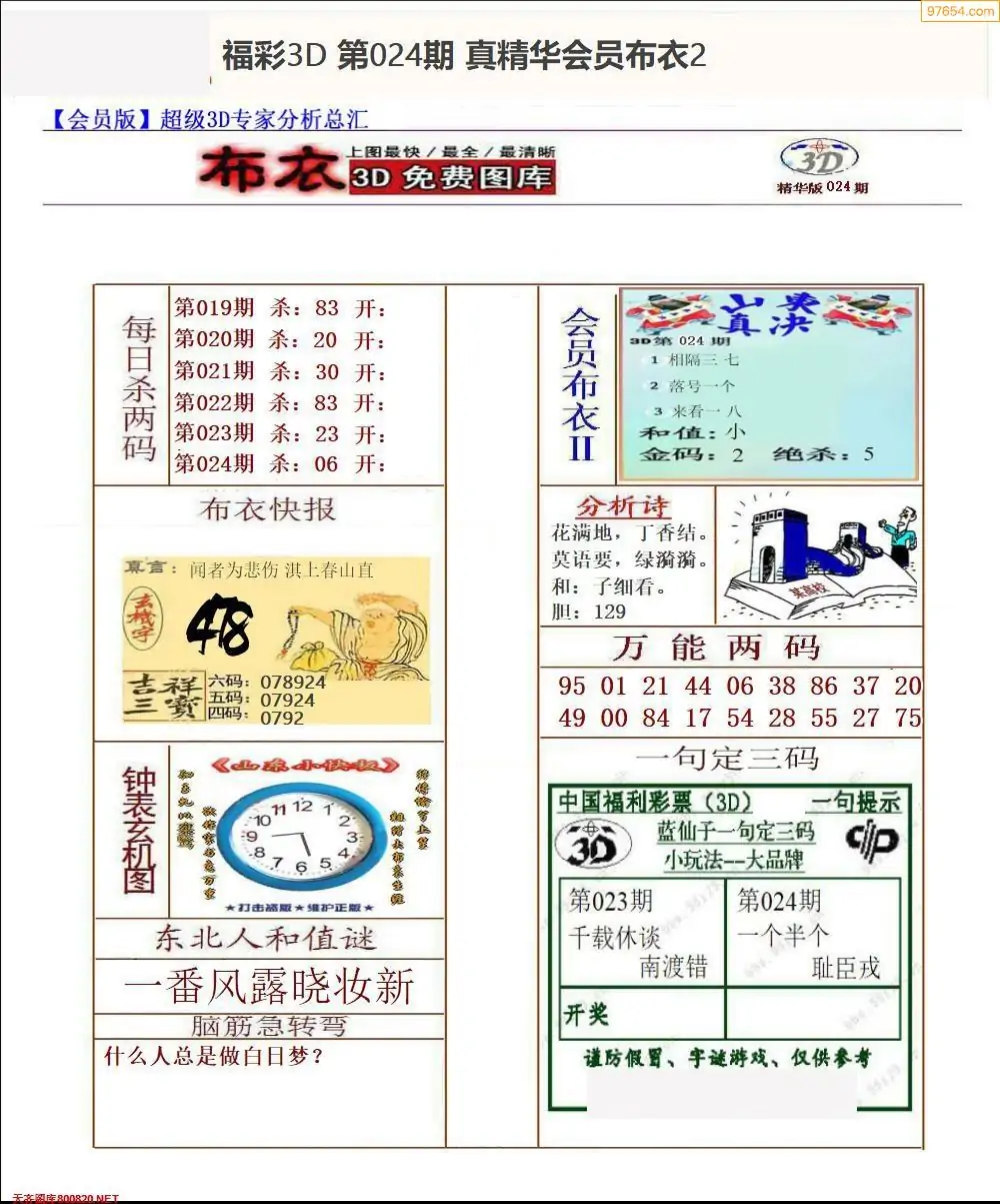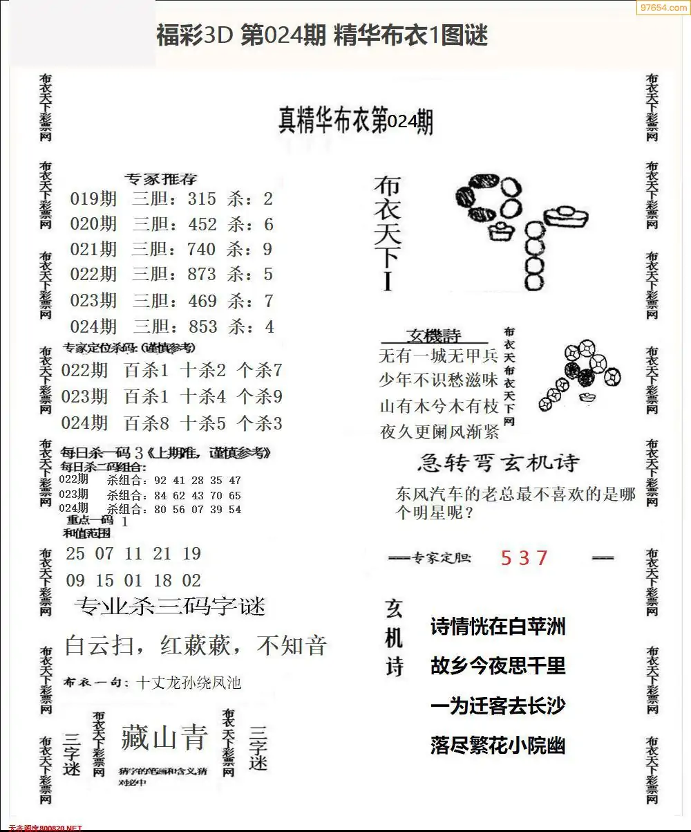 福彩024期3d真精华布衣+布衣早报(转载)