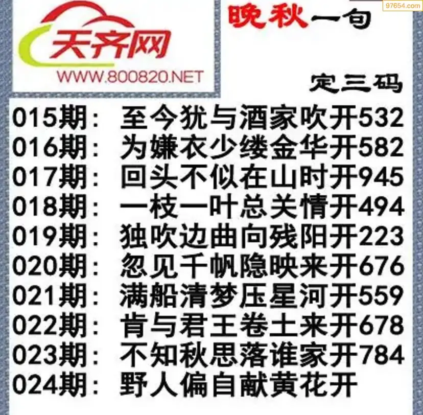 024期3d福彩今日晚秋字谜一句定三码