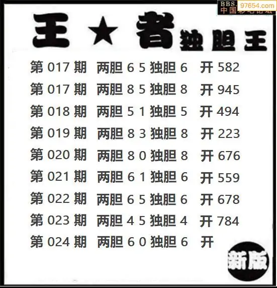 024期97654本站收集胆码出号预测