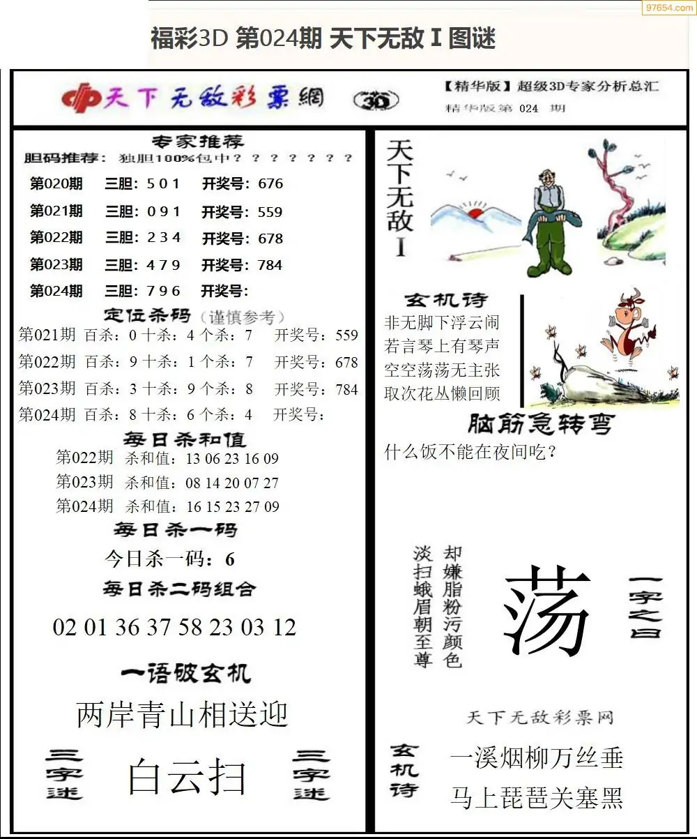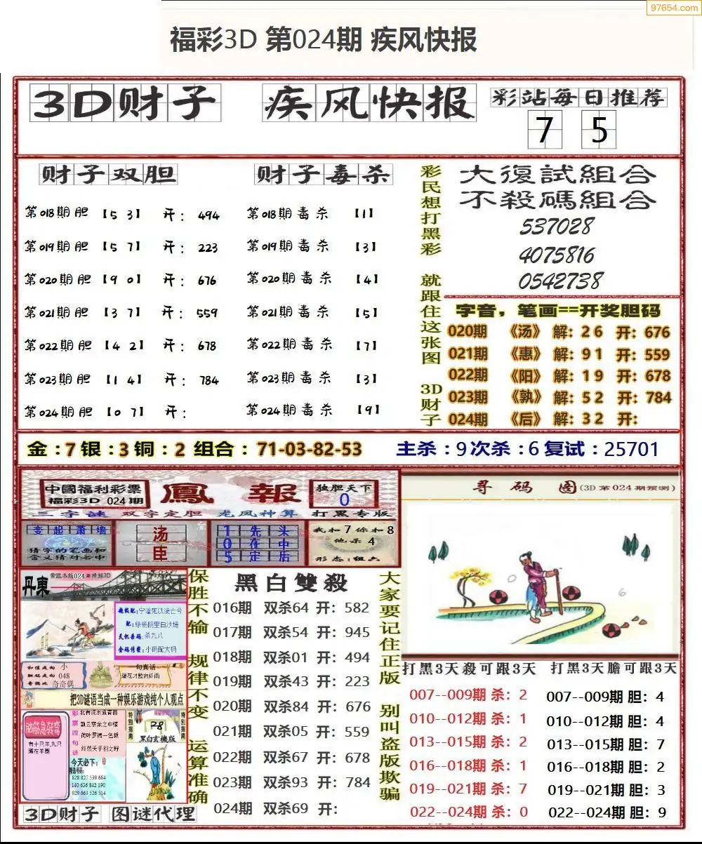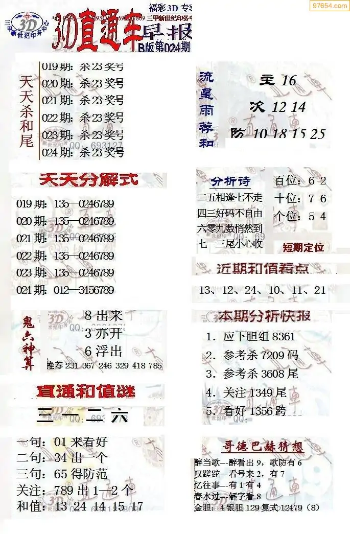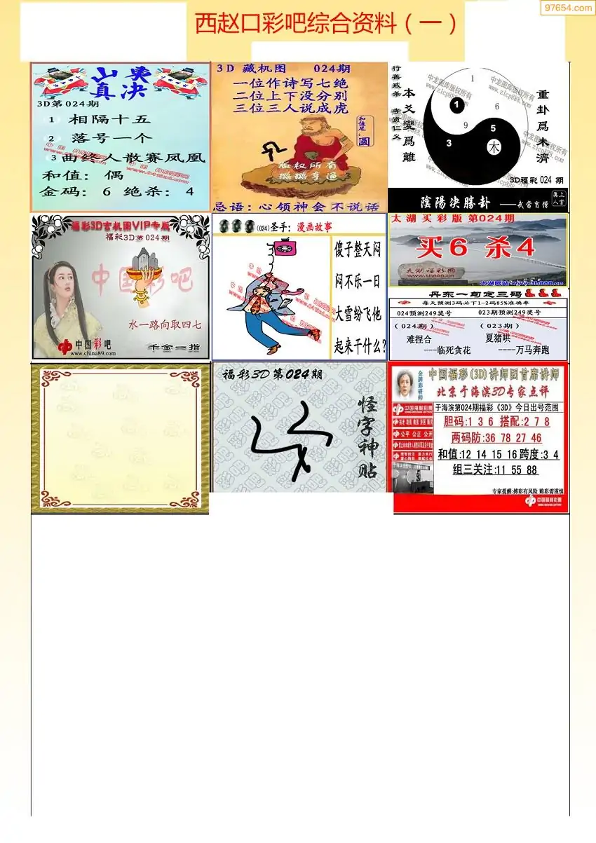福彩3D024期天牛彩吧套图整合总汇