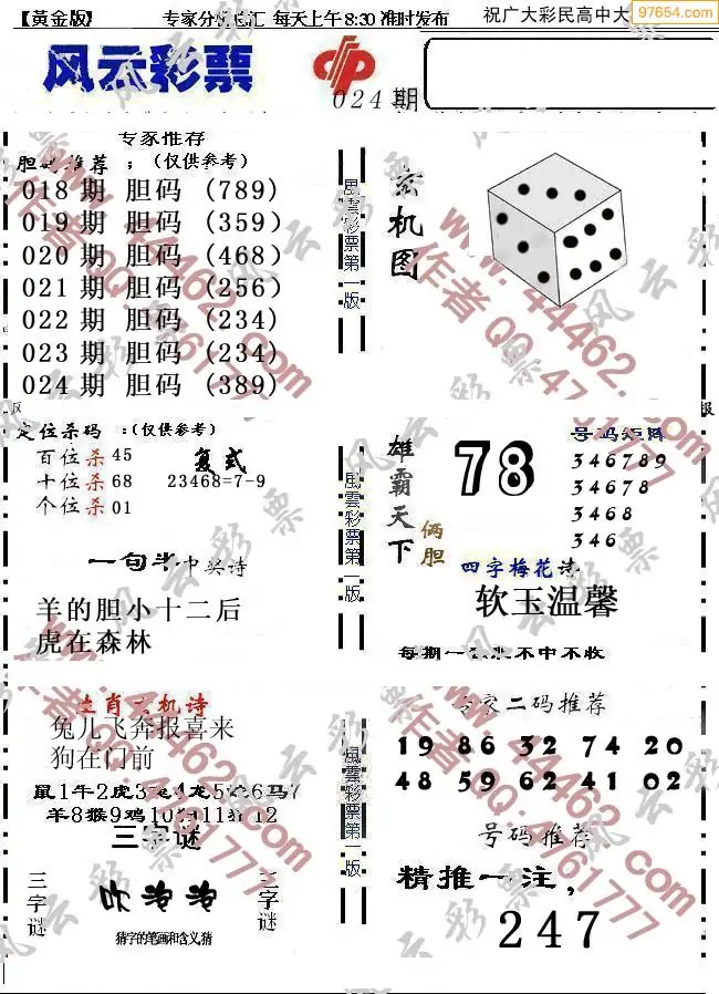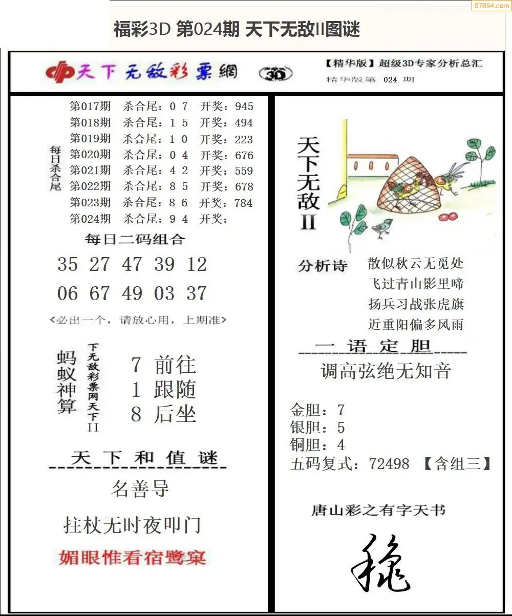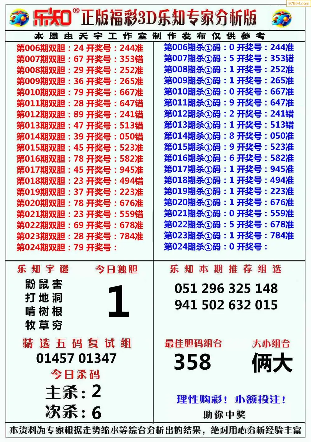 福彩3D024期天牛彩吧套图整合总汇