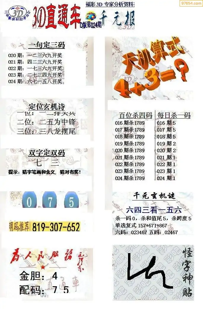 3D试机号金码