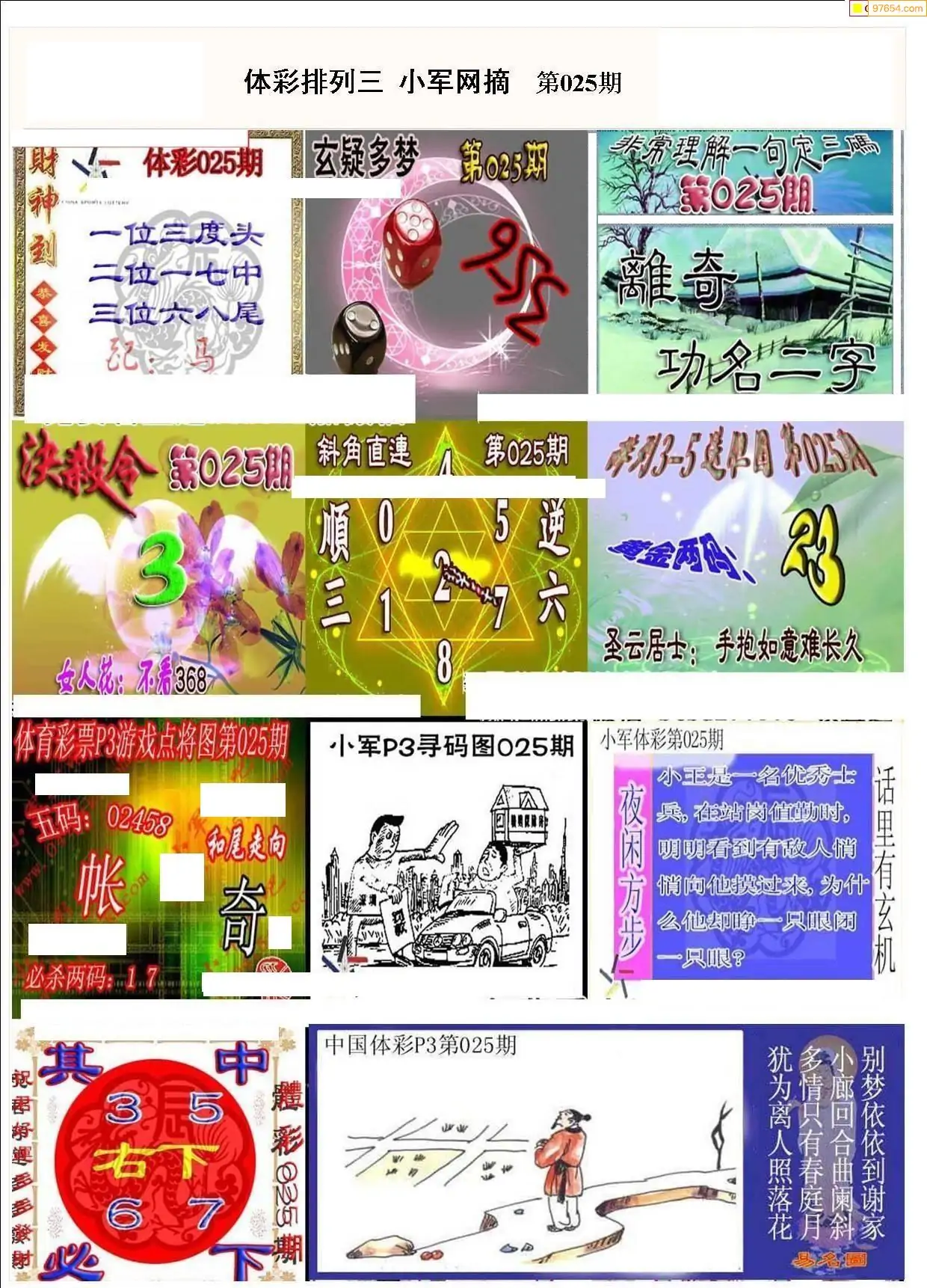 2026025期彩友图迷汇总_排列三今天图谜总汇