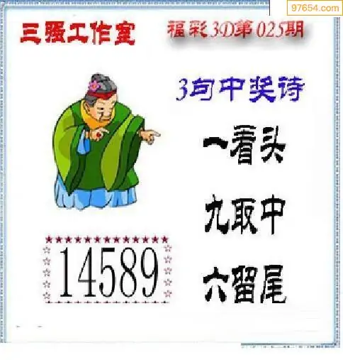 福彩3D26025期蓝仙子一句定三码图谜