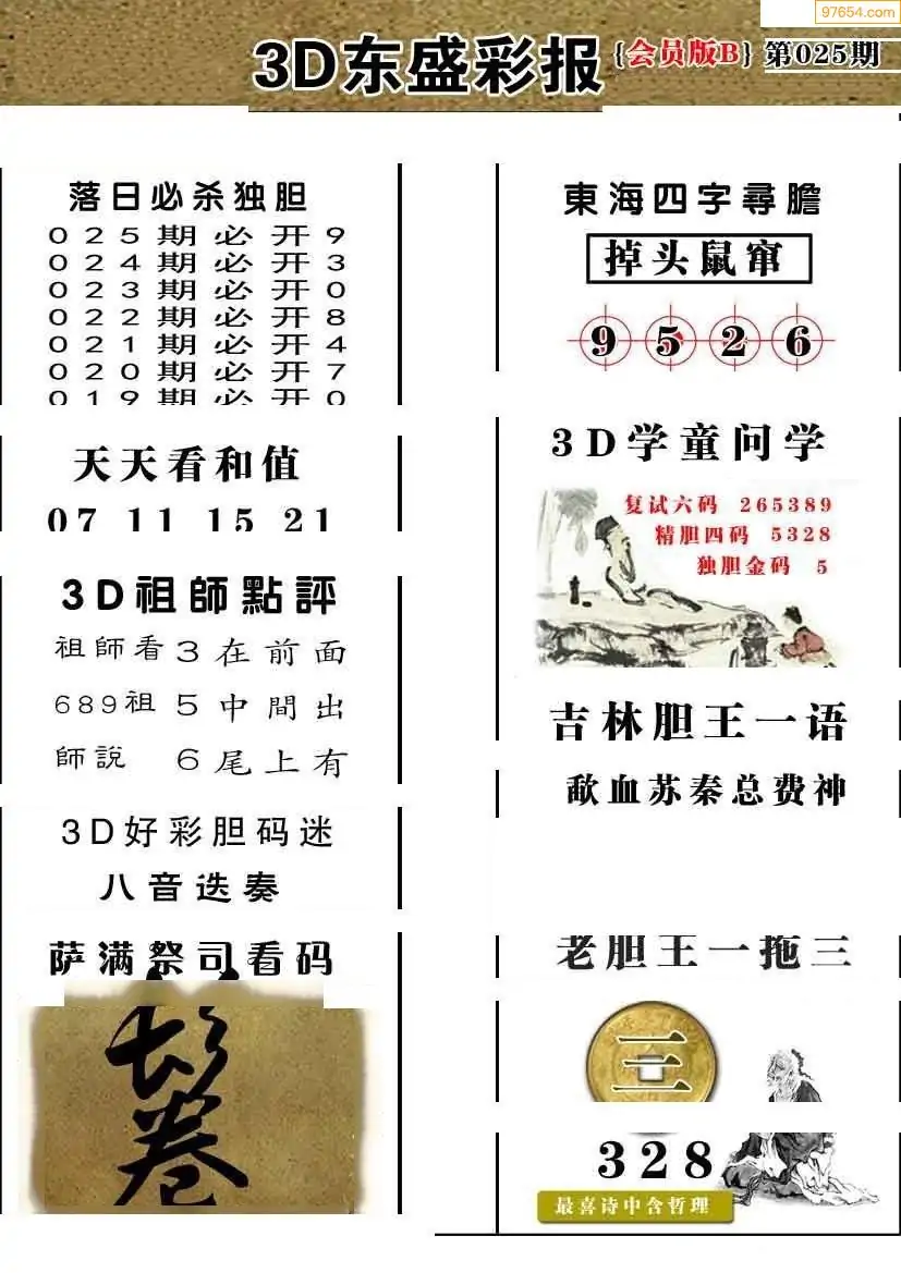 26025期今日3d三毛四版+东盛会员报