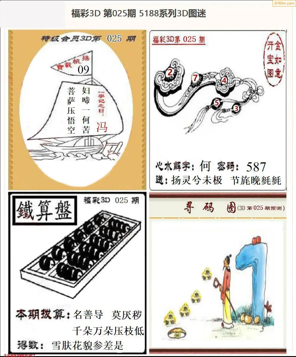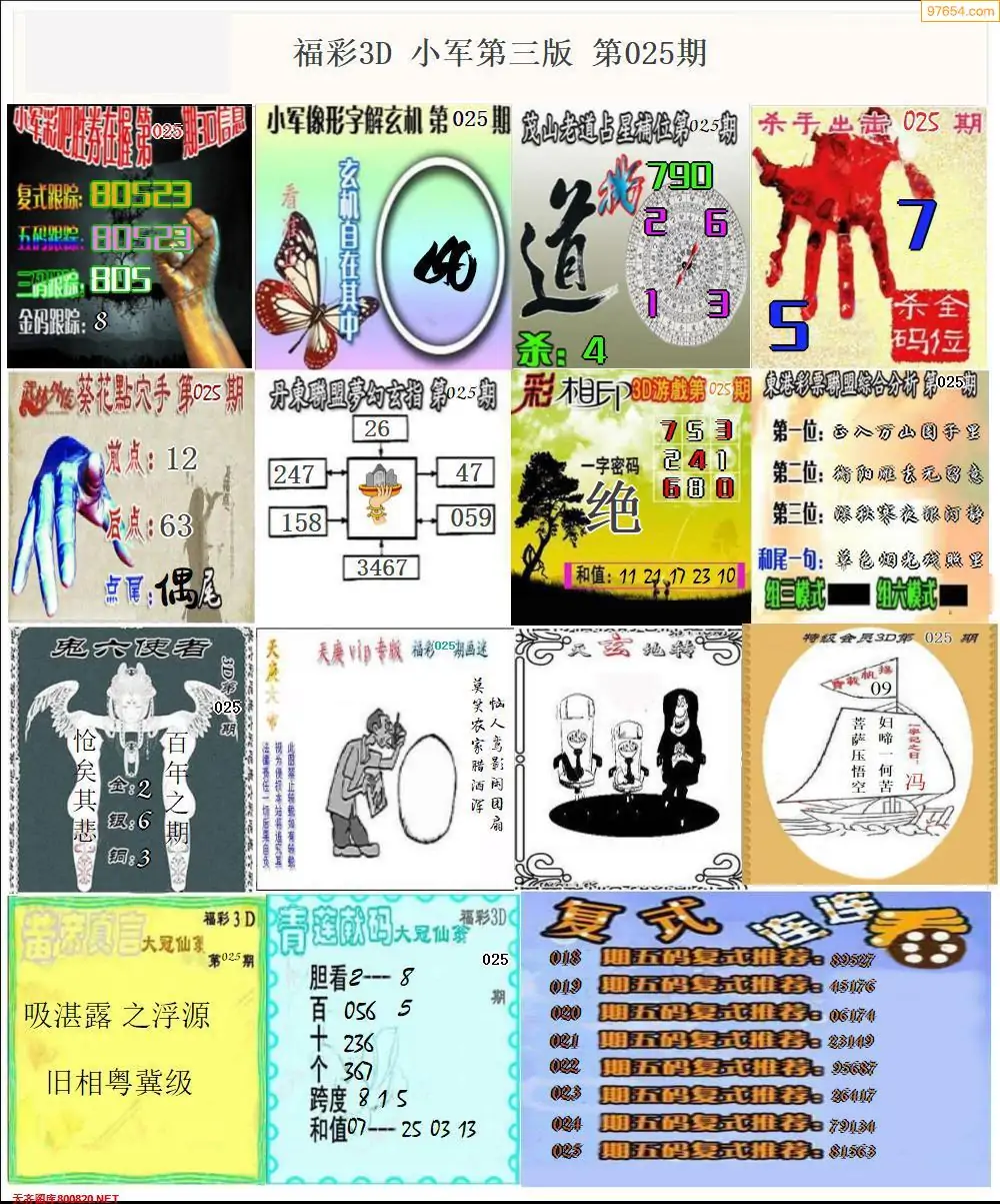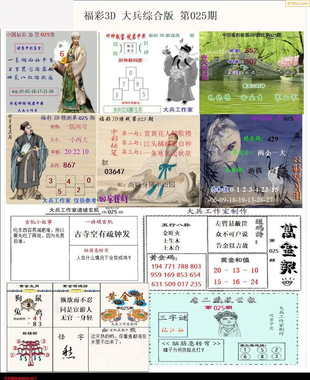 福彩3D025期天牛彩吧套图整合总汇