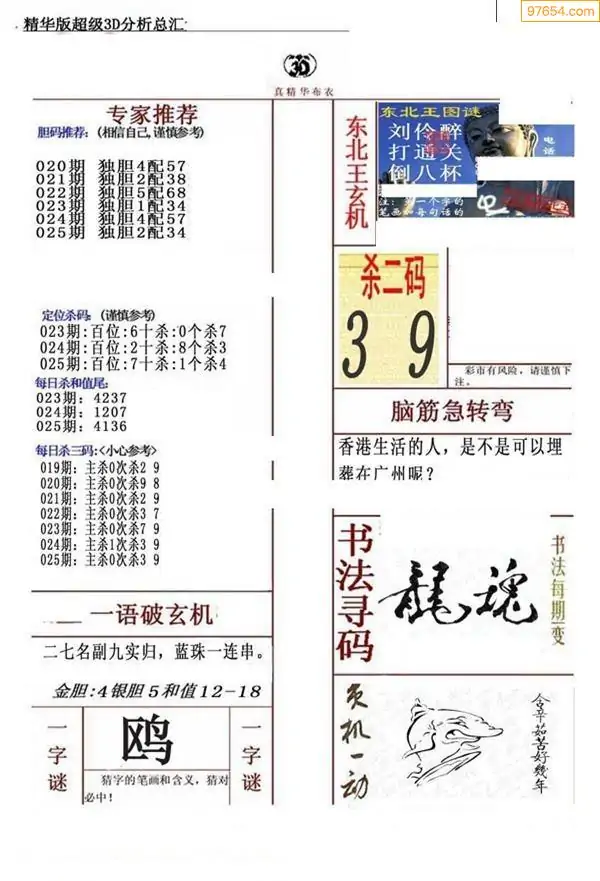 (3)2026025期3D预测总汇全图_福彩3d图谜字谜总汇