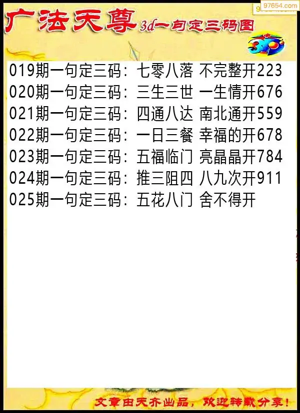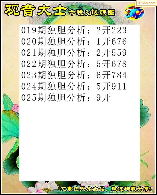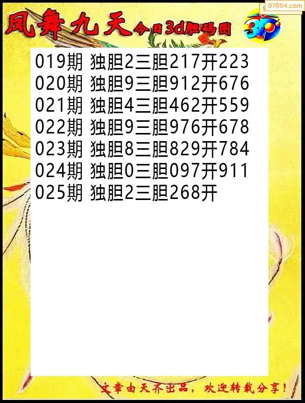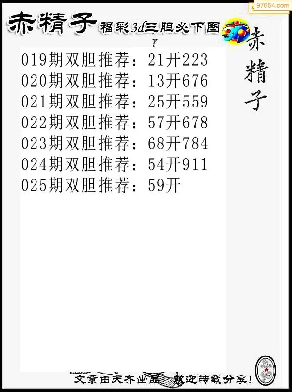 025期97654本站收集胆码出号预测