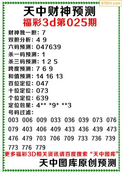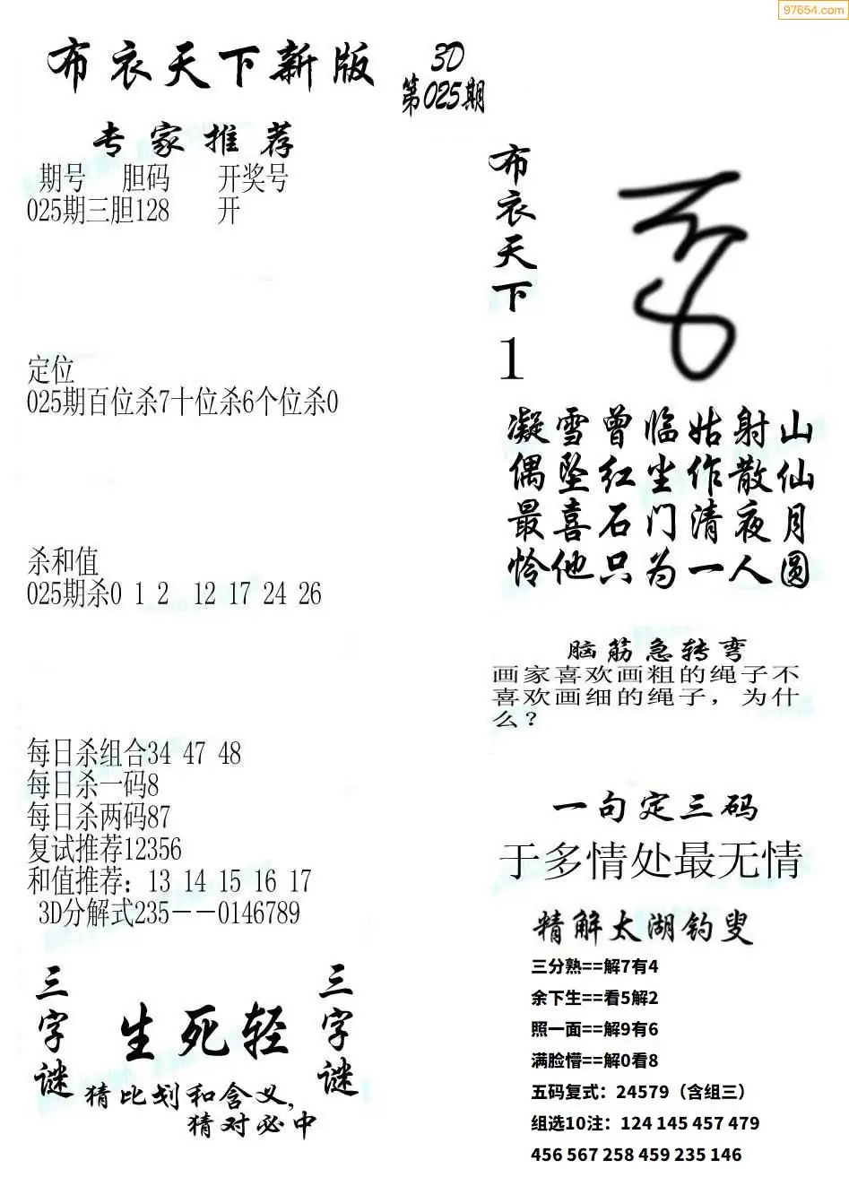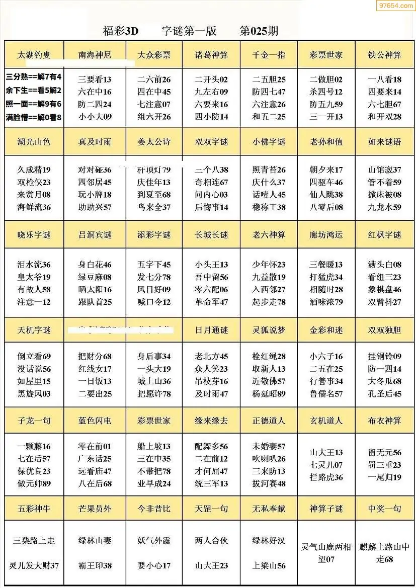 (3)2026025期3D预测总汇全图_福彩3d图谜字谜总汇