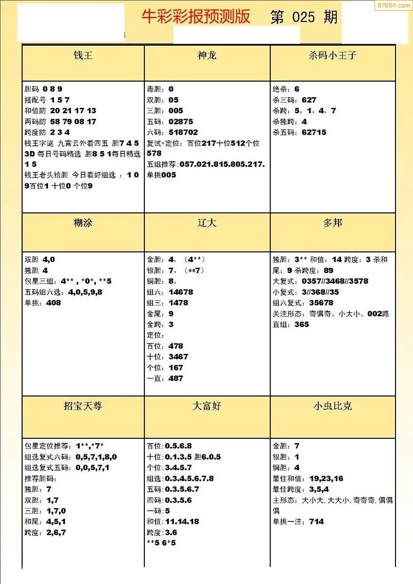 (8)26年025期今日3d各类彩报汇总