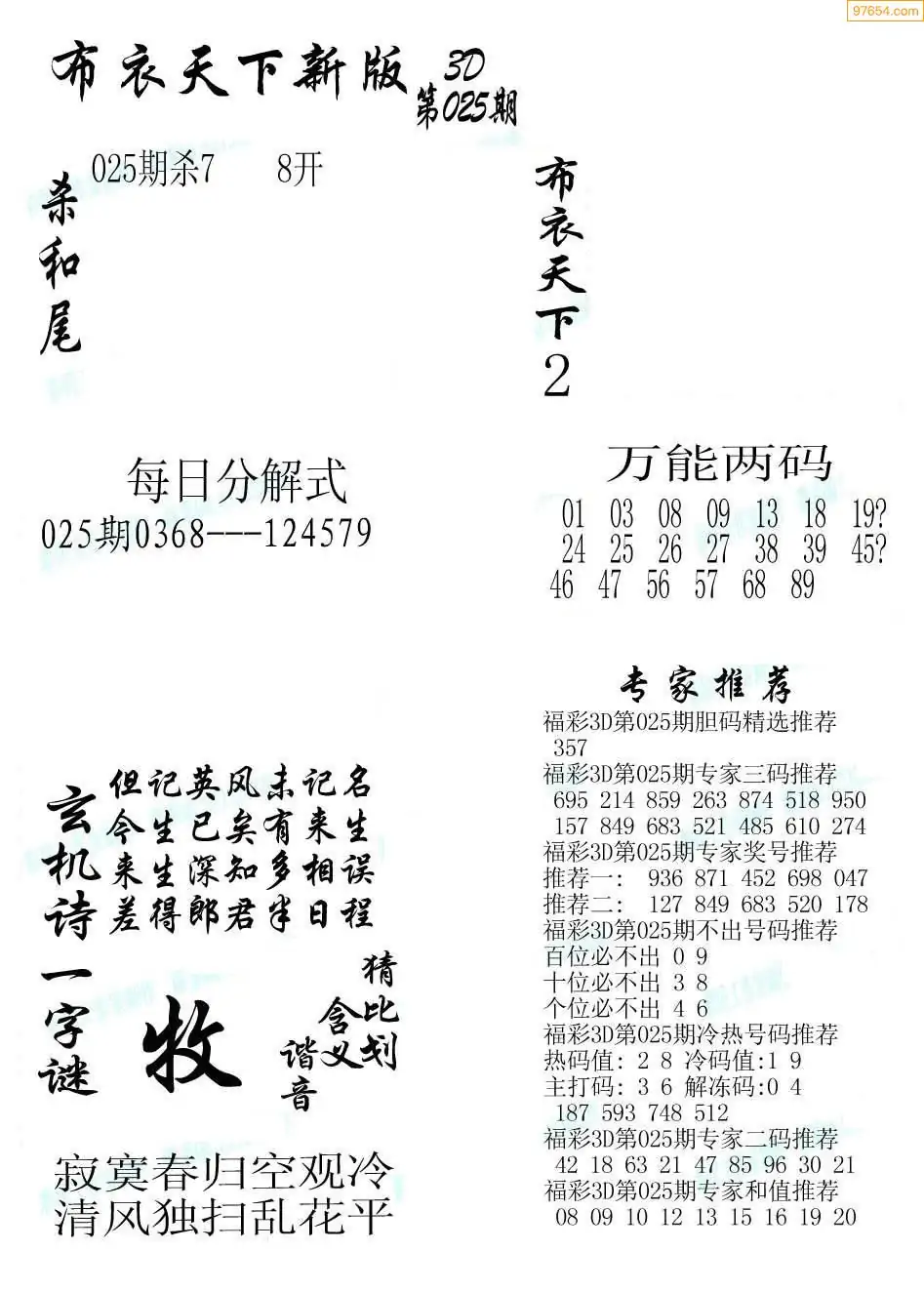 (2)26年025期本期3d图迷汇总_福彩3D图谜总汇图