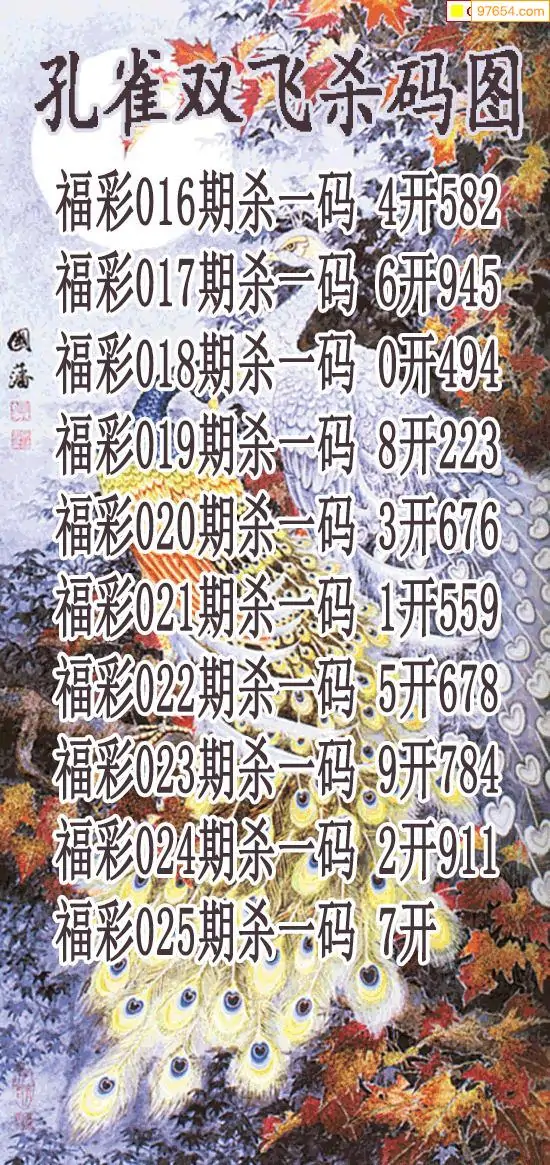 牛彩网025期福彩杀码图汇总 杀:04