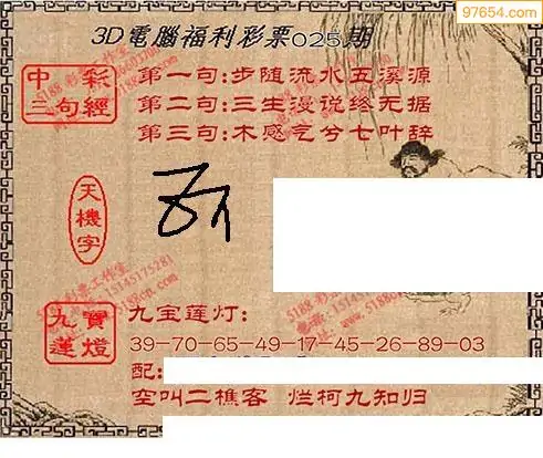 福彩26025期天庚大帝+九宝寻码图_九堡3d彩看图
