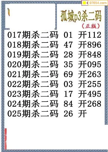 26年025期孤城本期杀码排3图谜