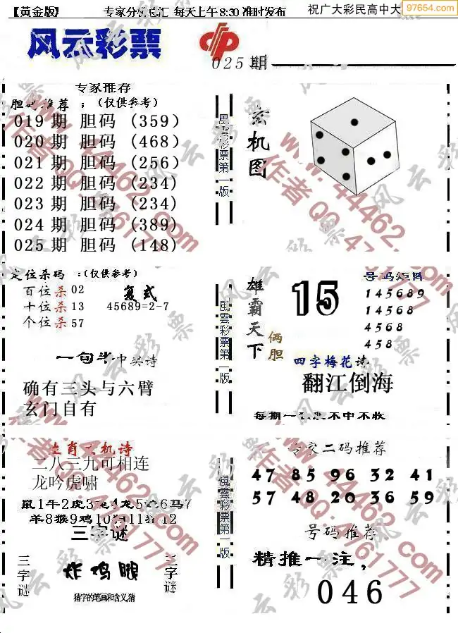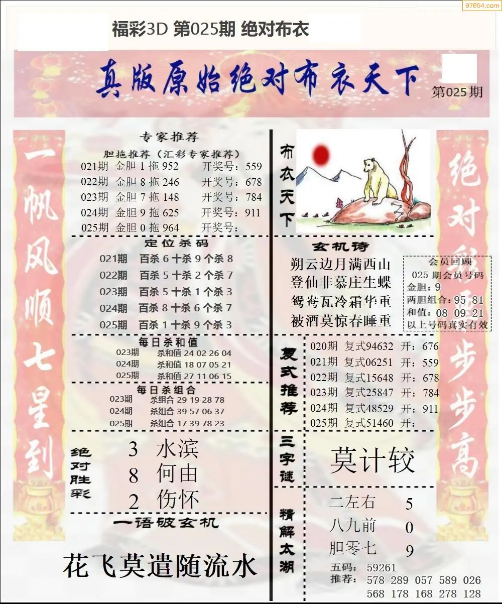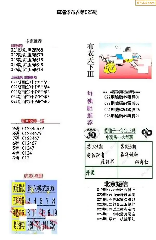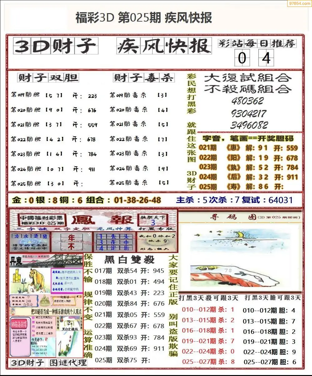 (8)26年025期今日3d各类彩报汇总
