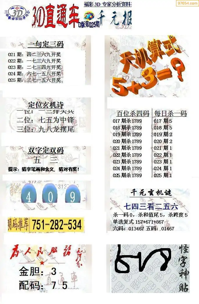 (3)2026025期3D预测总汇全图_福彩3d图谜字谜总汇