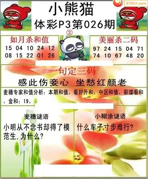 026期清清漫玄系列体彩p3图谜_体彩图谜打印版