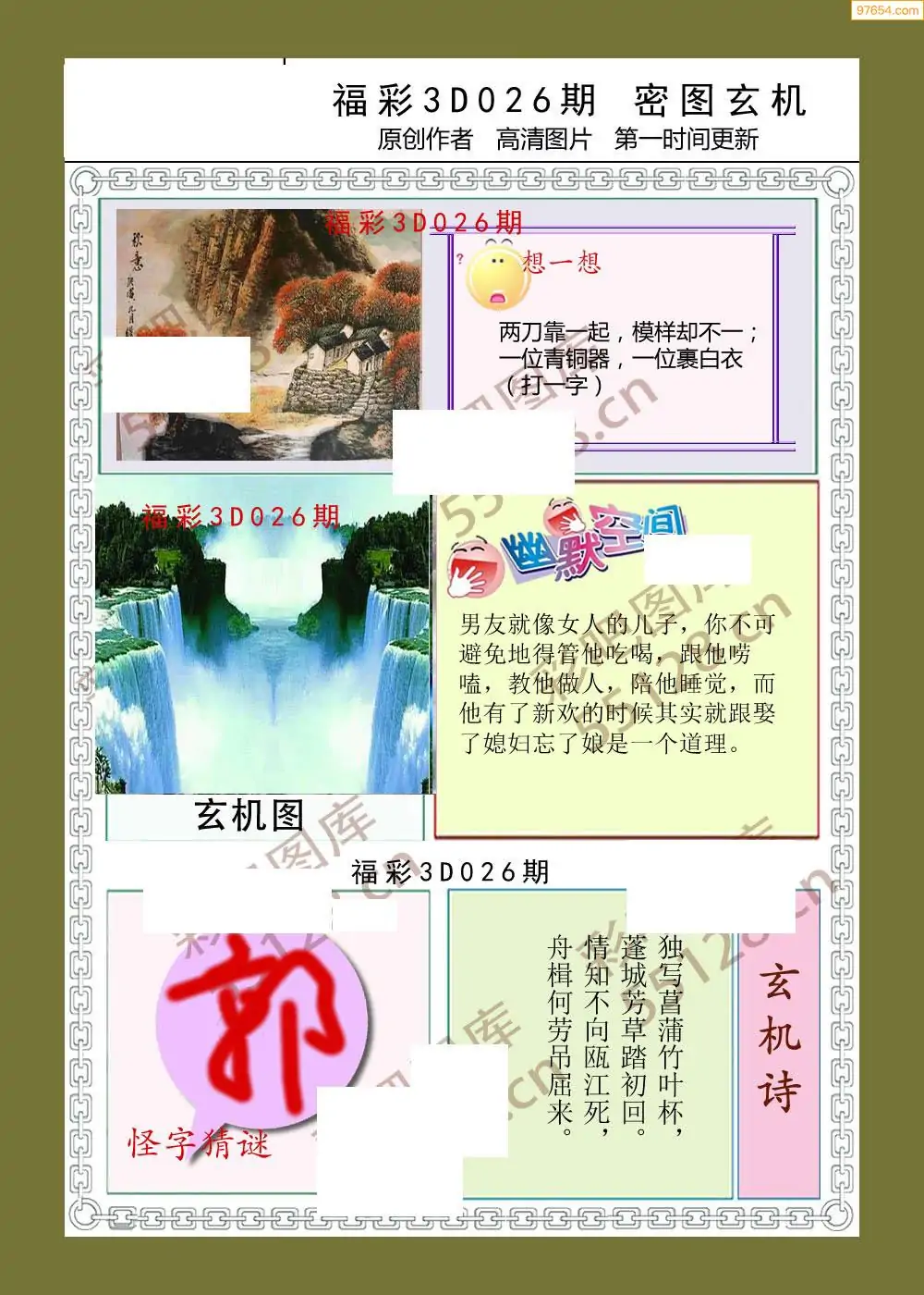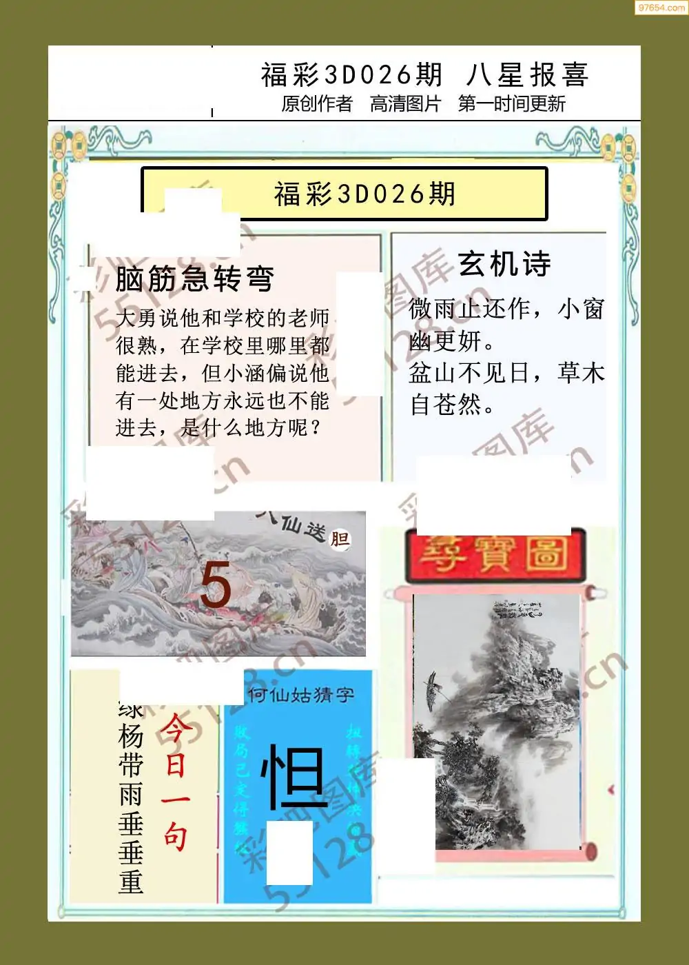3D26026期本站最新收集精品图汇总(晚版)