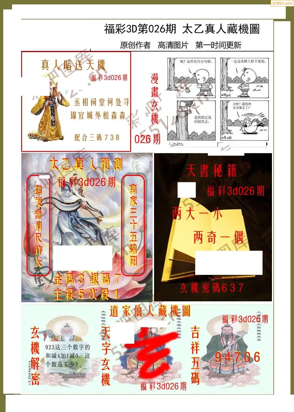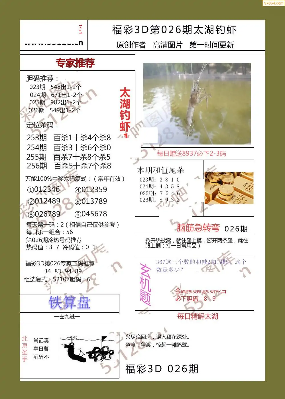 福彩3D026期天牛彩吧套图整合总汇
