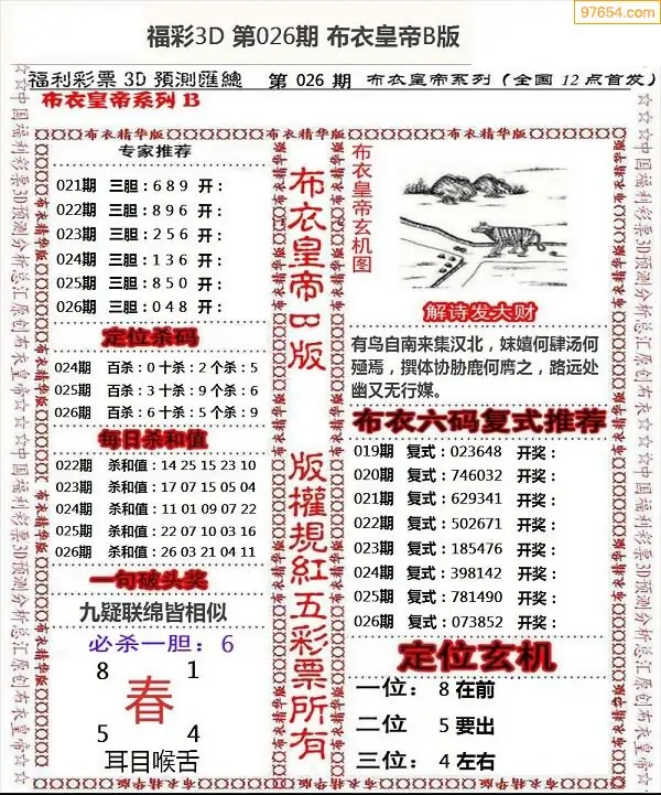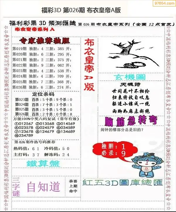 26026期3D布衣皇帝AB(新版)