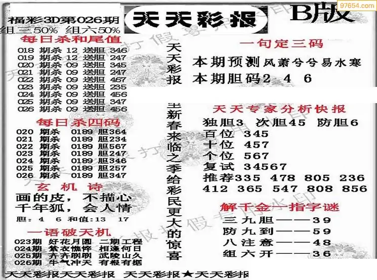 26026期丹东一句定三码(正版)_今晚3D图谜