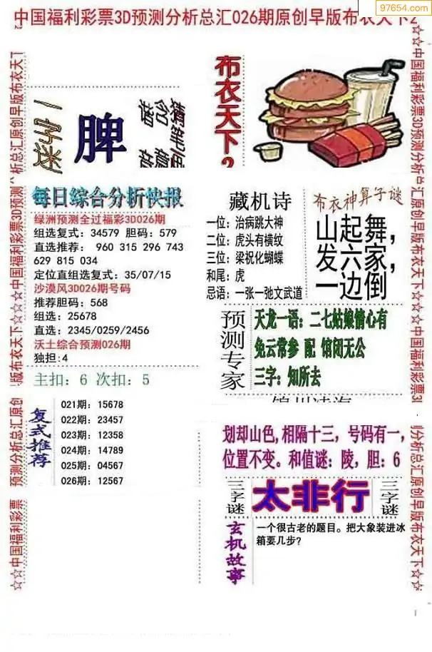 26026期天宇一句定三码3D图库