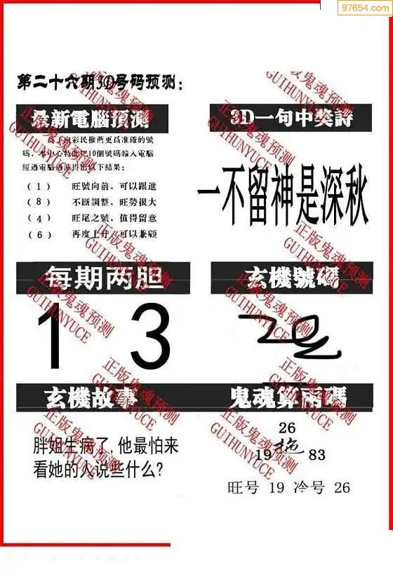 26026期鬼六神算 _鬼六神算正版原图