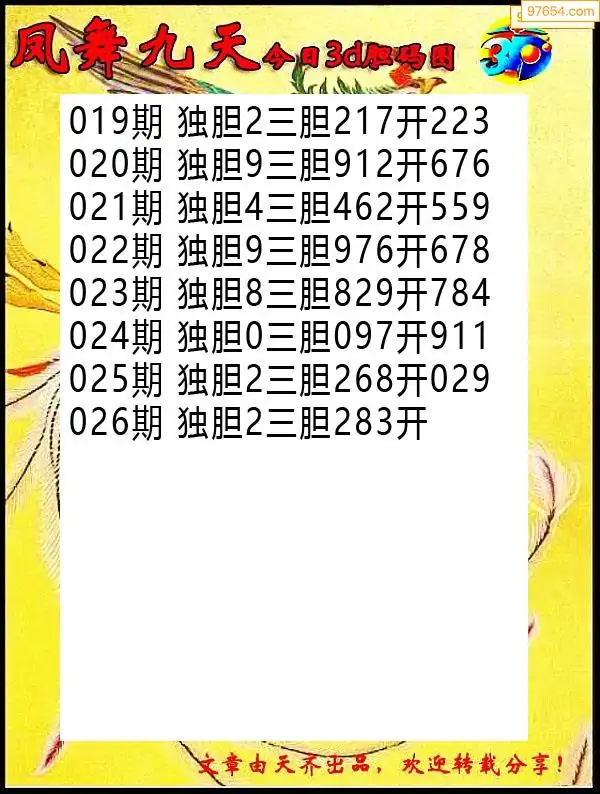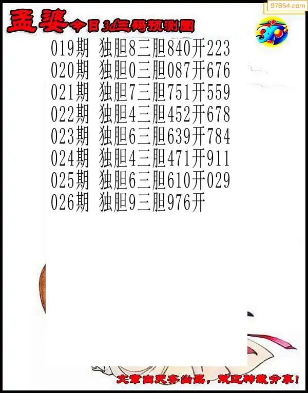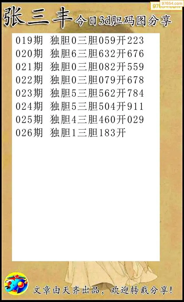 2026026期彩彩网3d原创图迷搜集(天中整理)