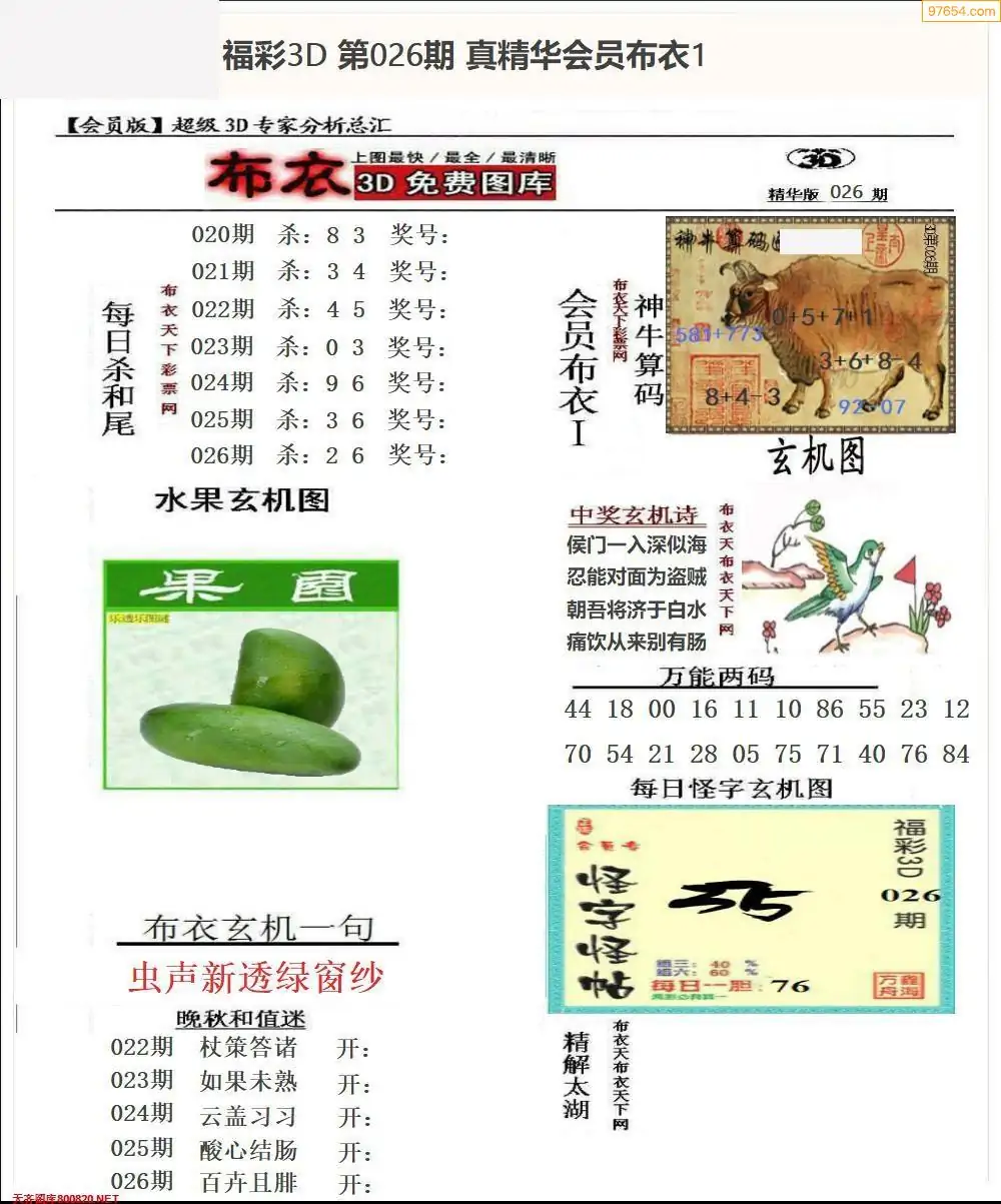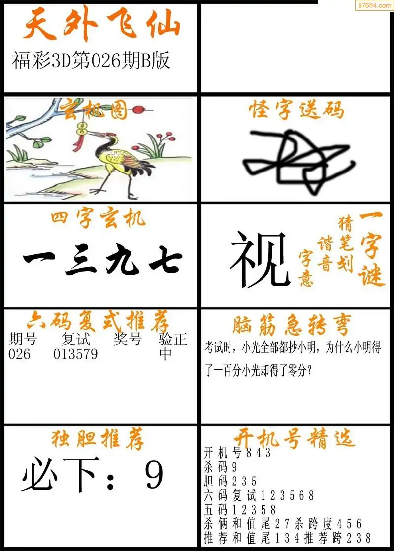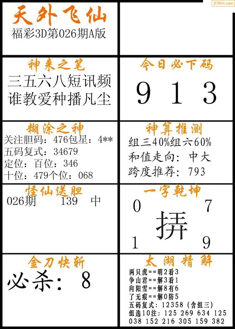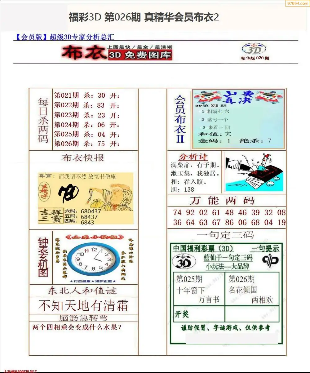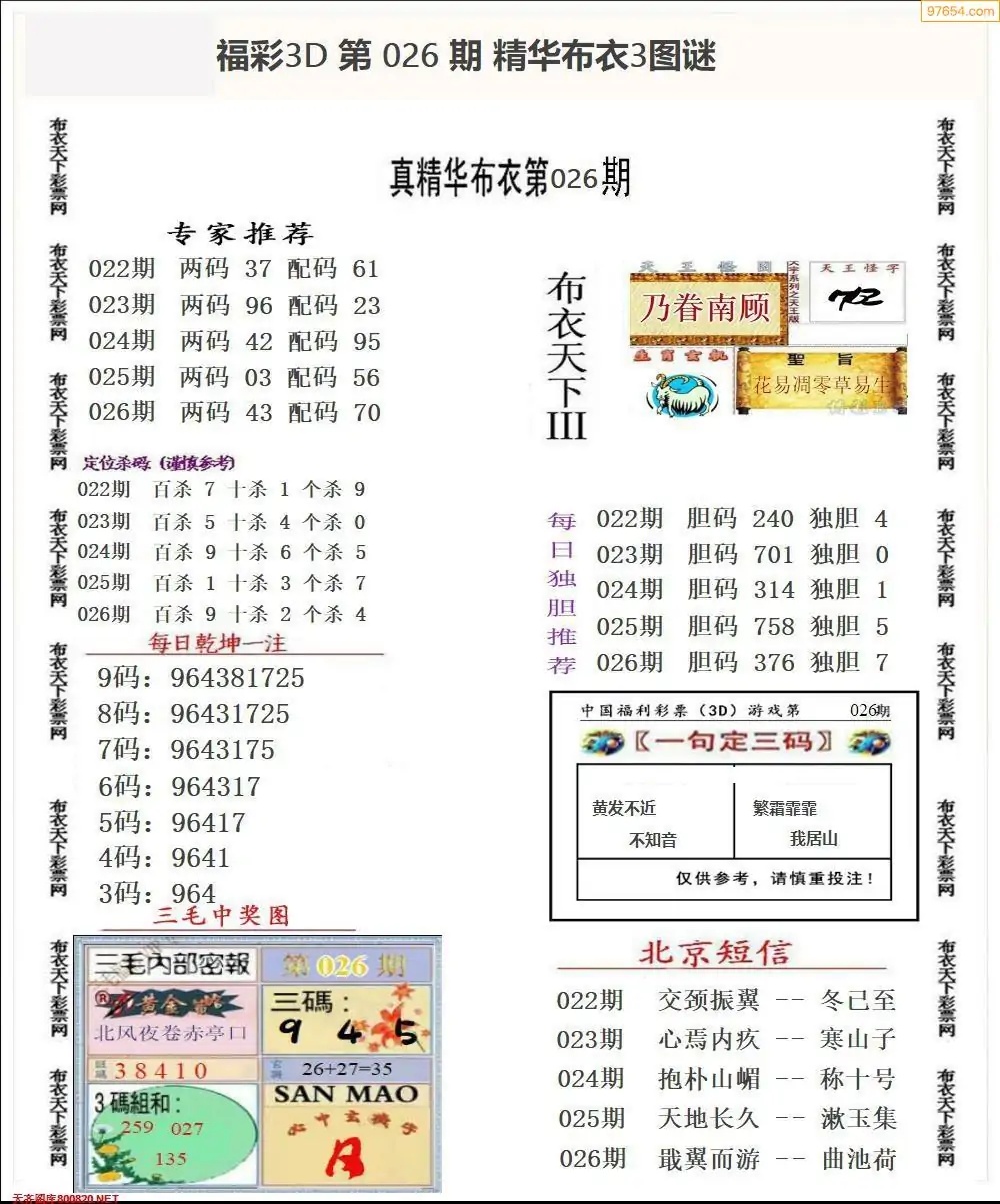 (2)26年026期本期3d图迷汇总_福彩3D图谜总汇图