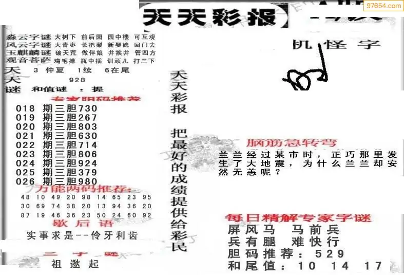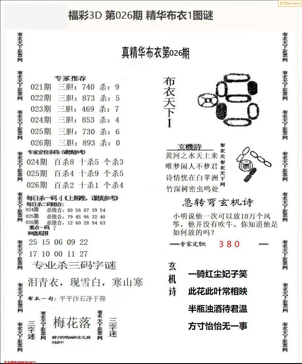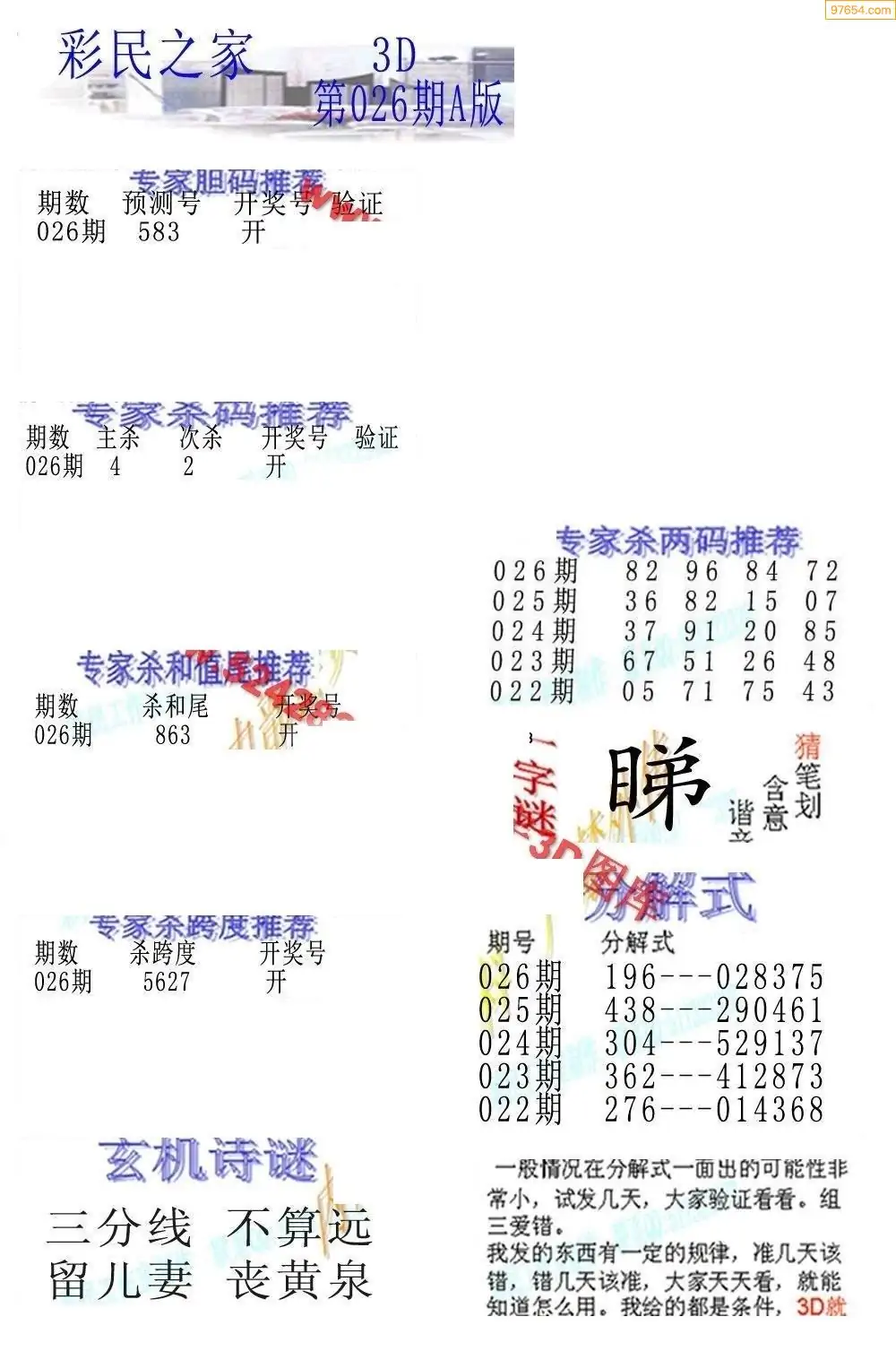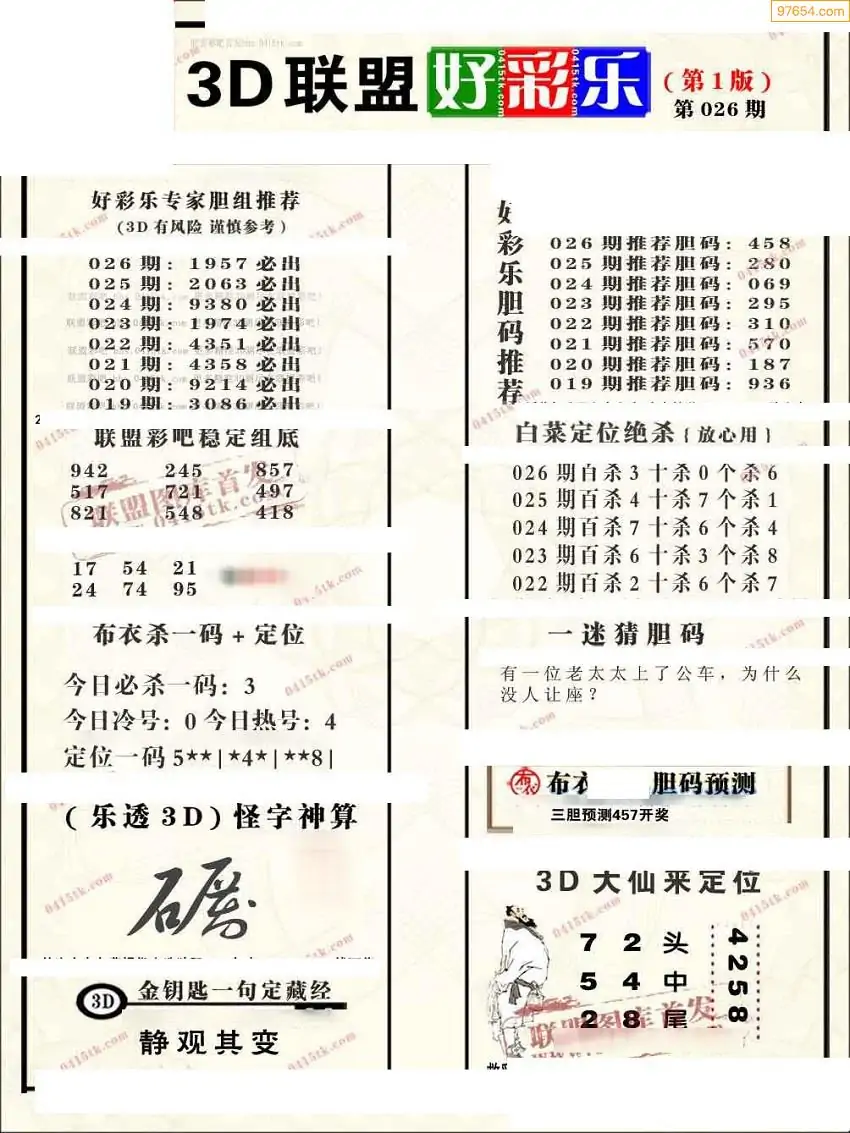 (3)2026026期3D预测总汇全图_福彩3d图谜字谜总汇