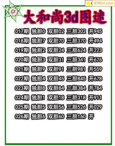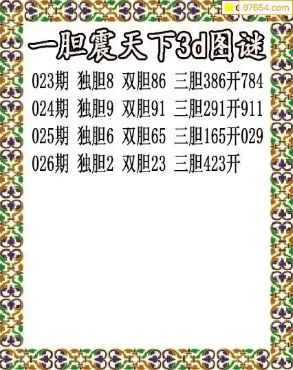 (3)2026025期3D预测总汇全图_福彩3d图谜字谜总汇