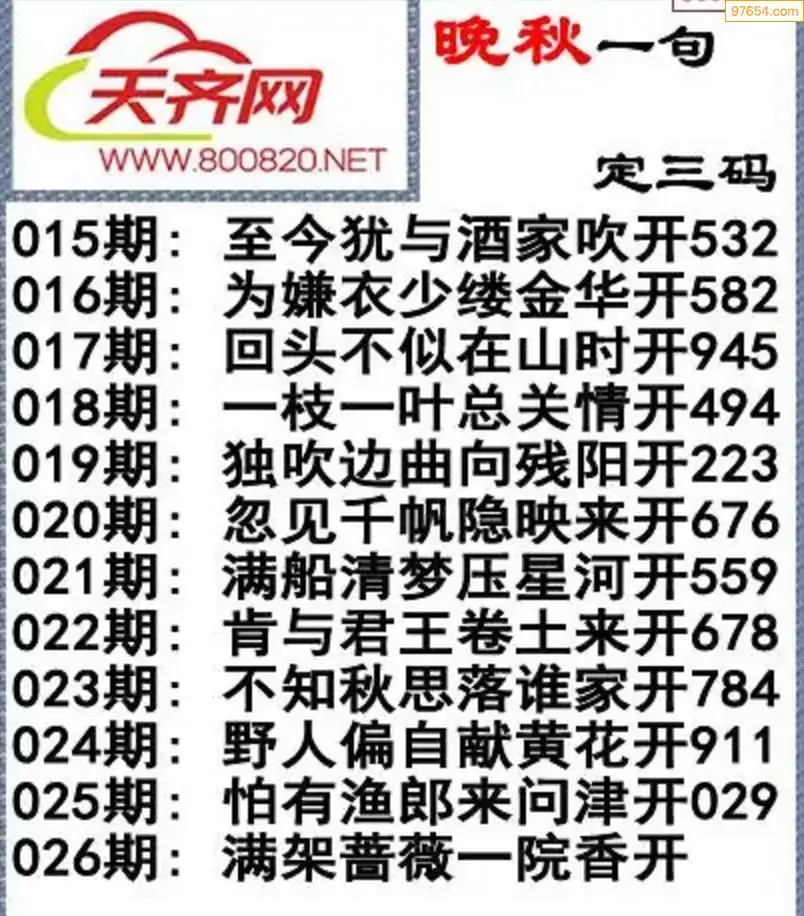 026期3d福彩今日晚秋字谜一句定三码