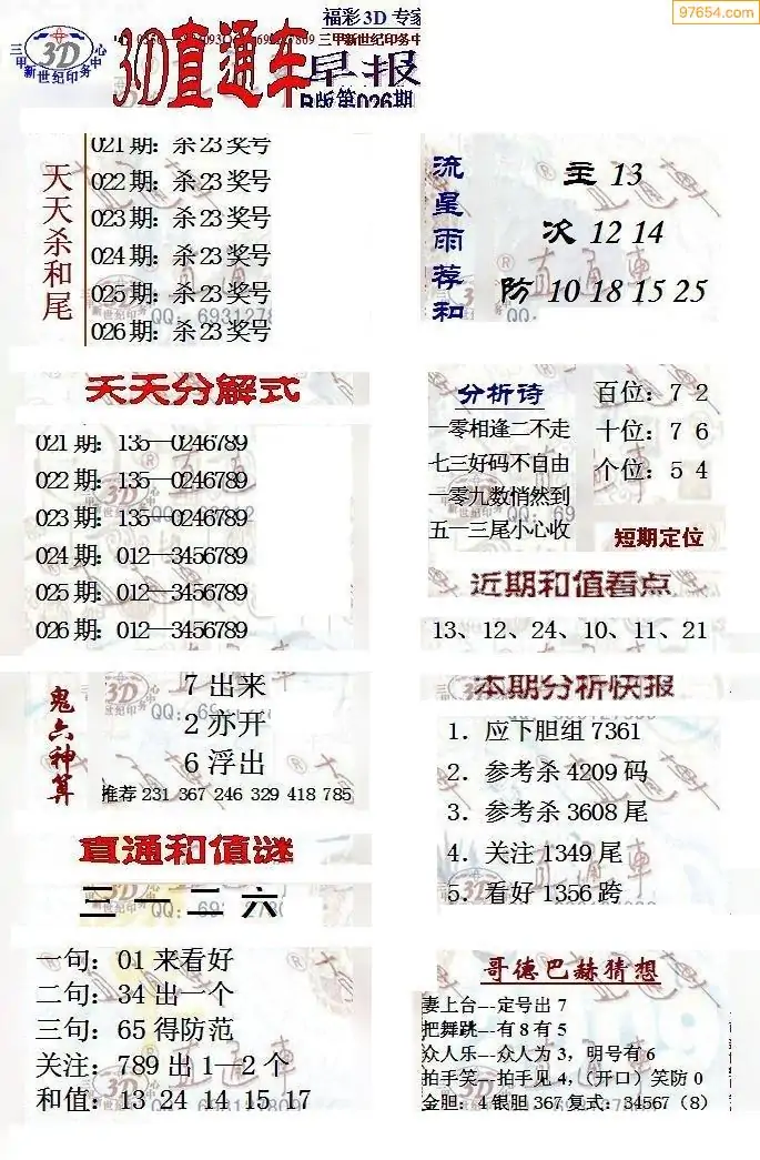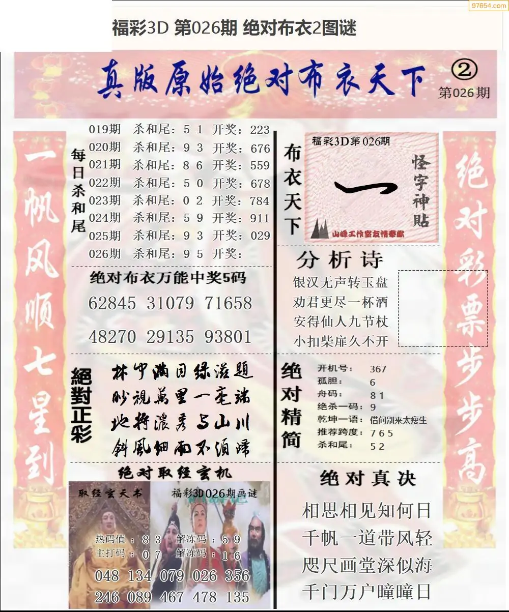 26026期丹东一句定三码(正版)_今晚3D图谜