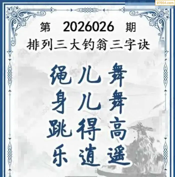 26年体彩p3第026期大钓翁三字诀