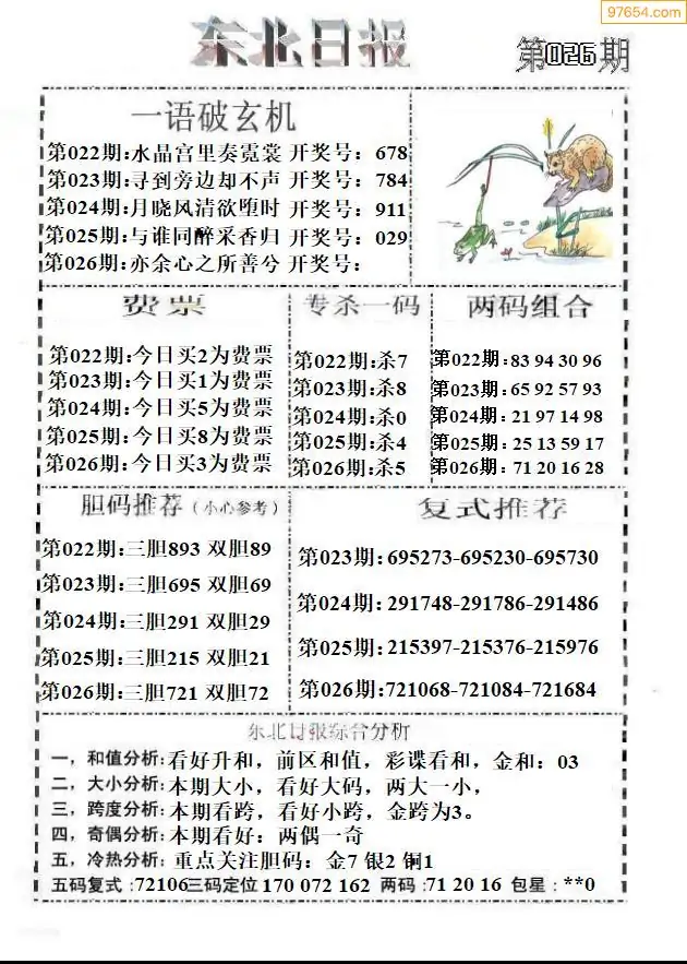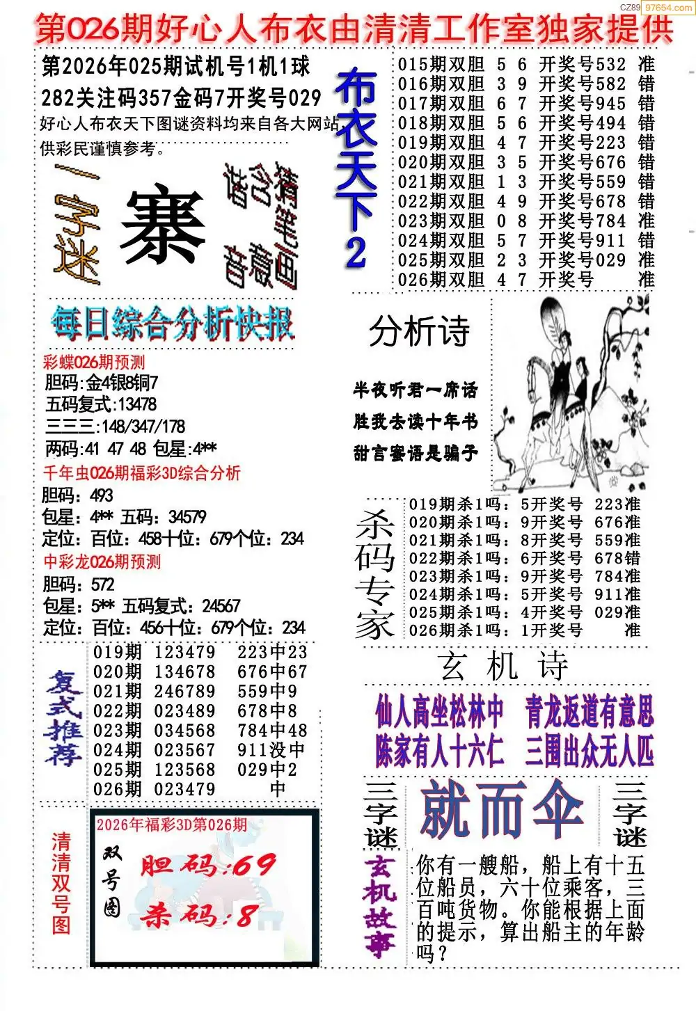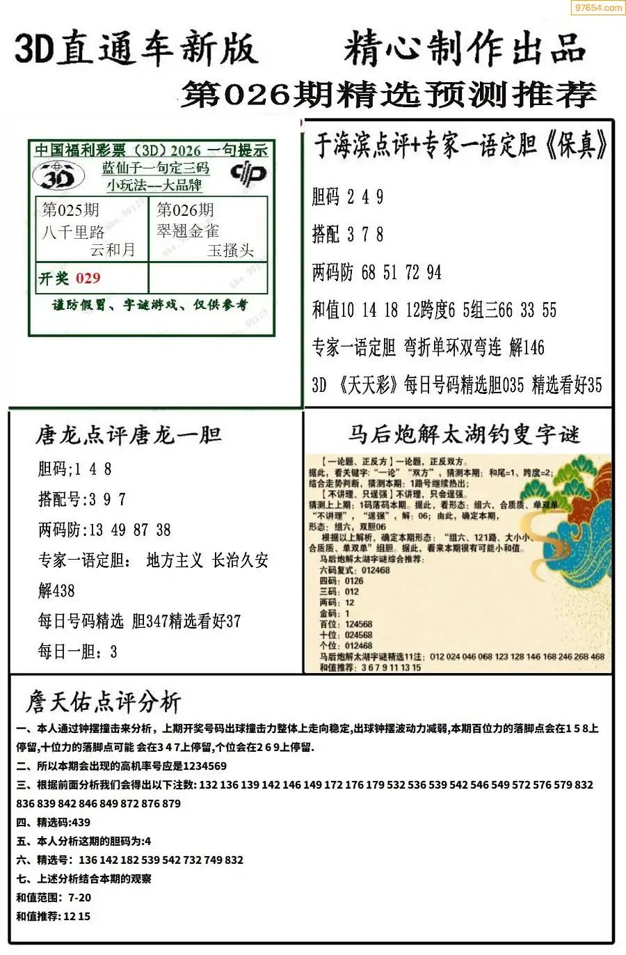 (2)26年026期本期3d图迷汇总_福彩3D图谜总汇图