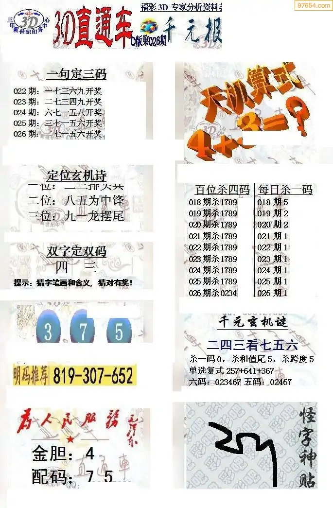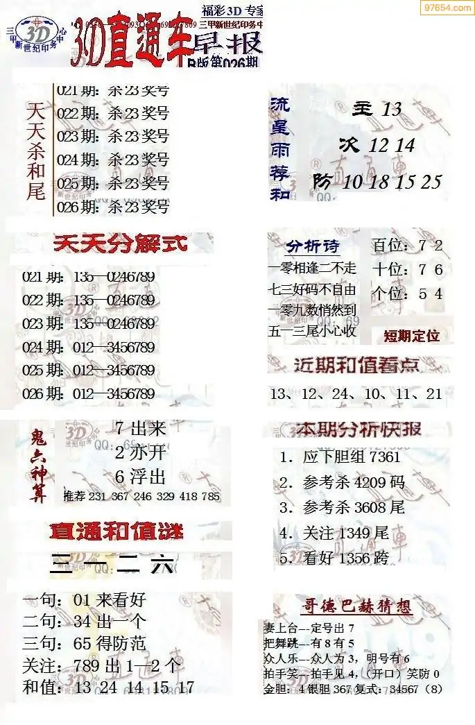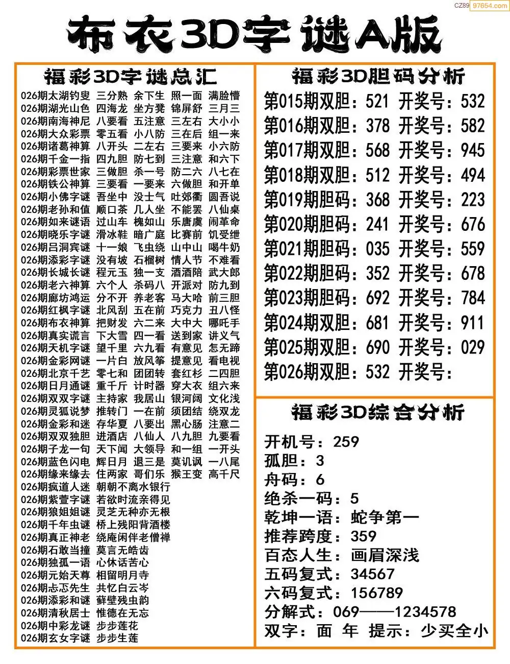 (3)2026026期3D预测总汇全图_福彩3d图谜字谜总汇
