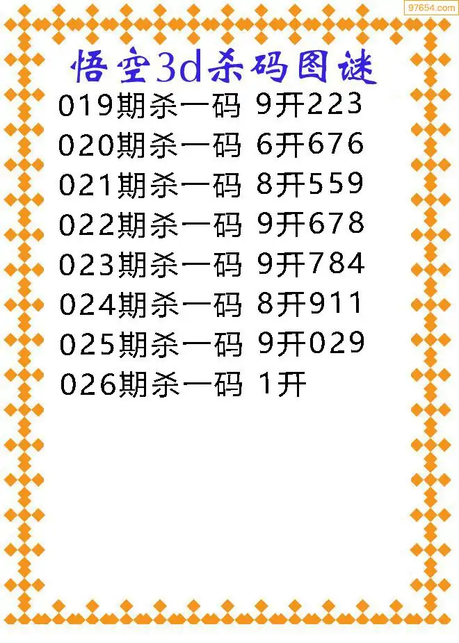 (3)2026025期3D预测总汇全图_福彩3d图谜字谜总汇