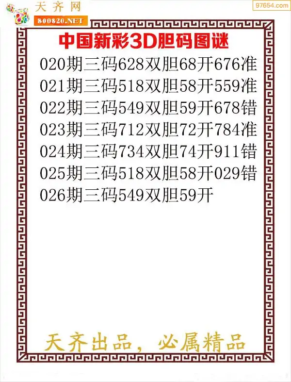 (8)26年025期今日3d各类彩报汇总