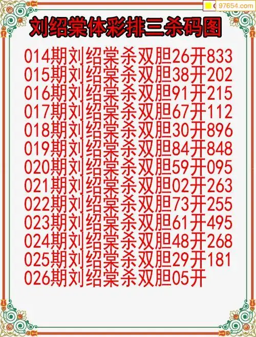 26年026期体彩排三刘绍棠杀码图