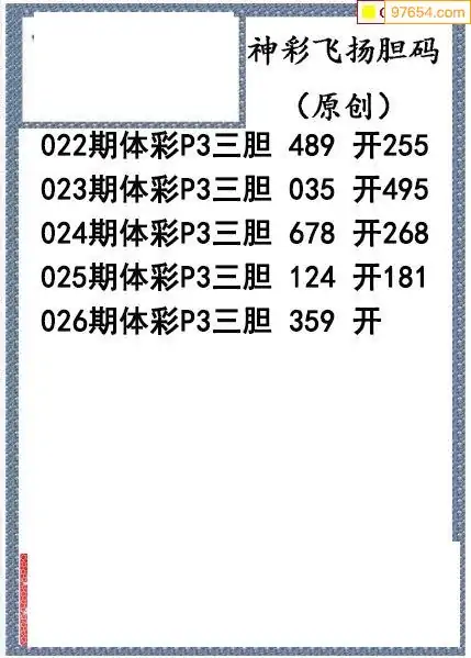 26026期神彩飞扬体彩P3三胆图谜