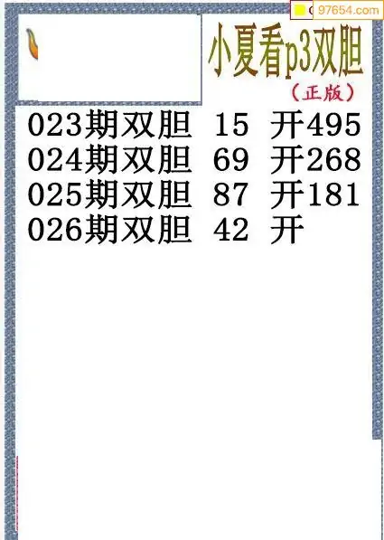26026期小夏双胆体彩P3图谜