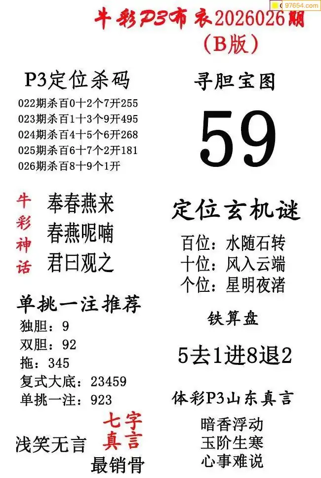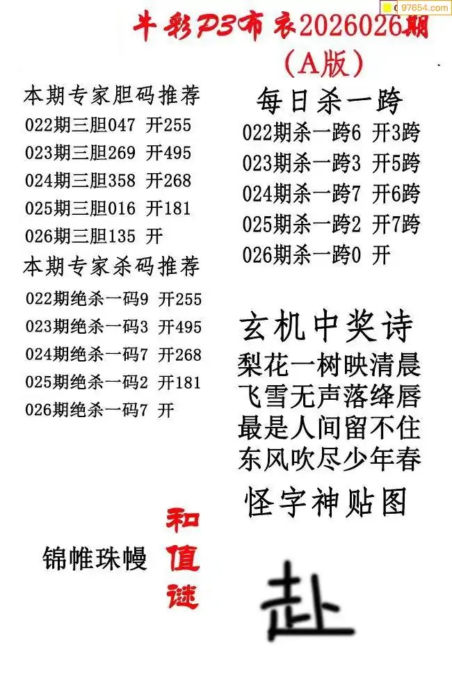 2026年026期北盟天机图+p3仙机图谜 _排三图谜专区