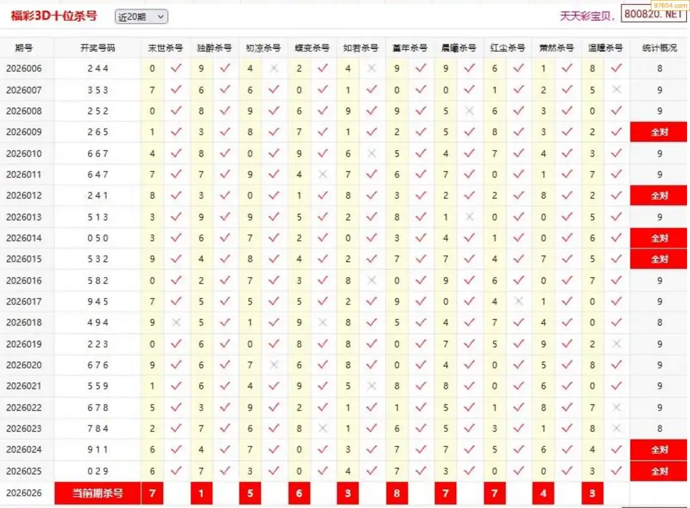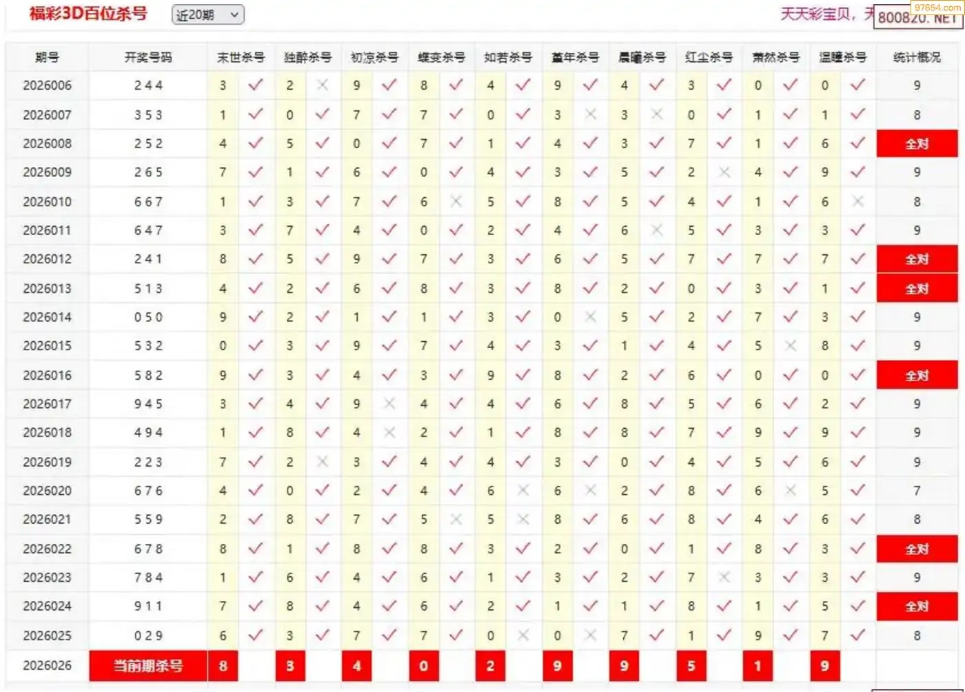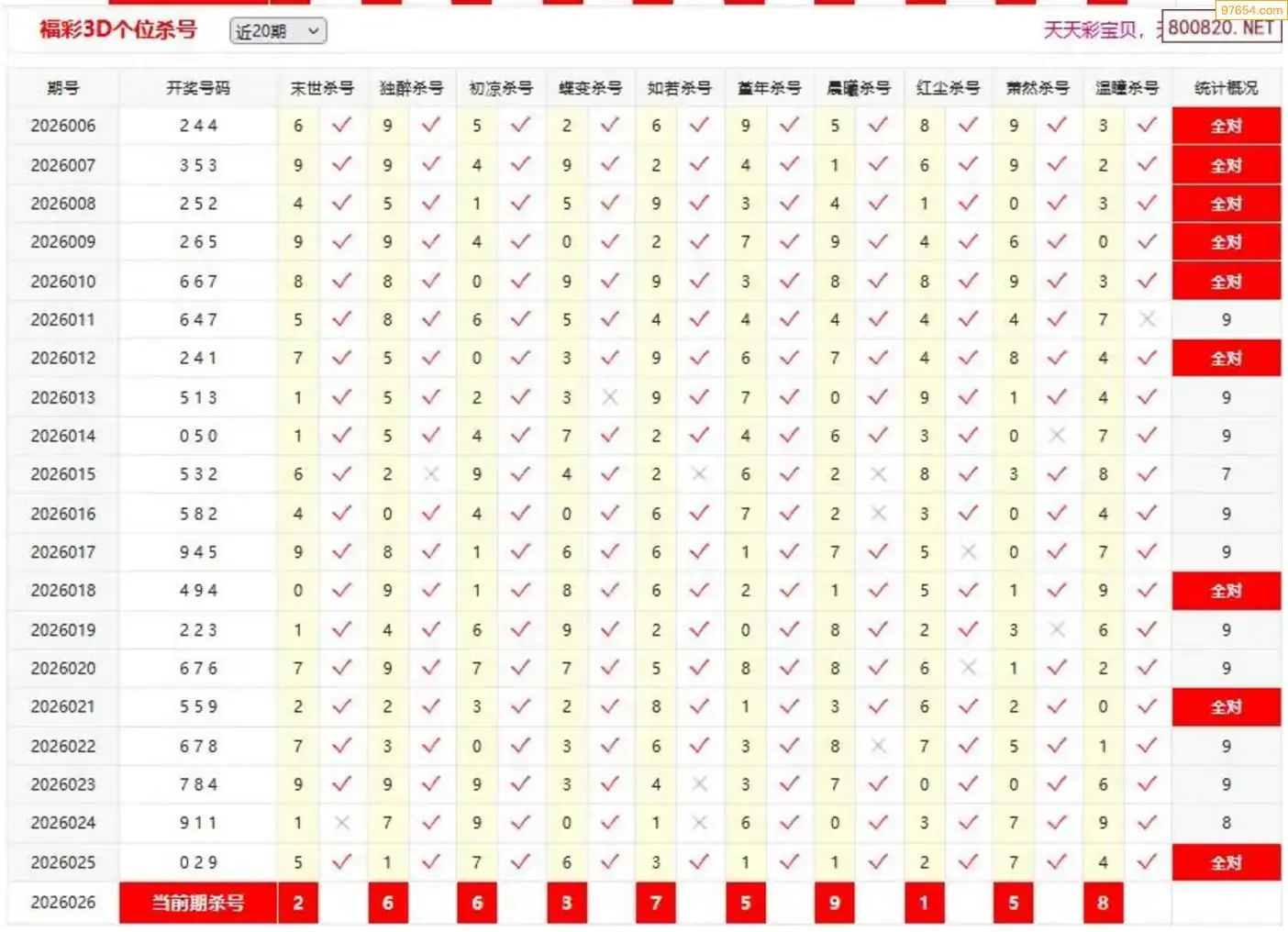 福彩3D盐都杂谈26年026期杀码猜想 8连中